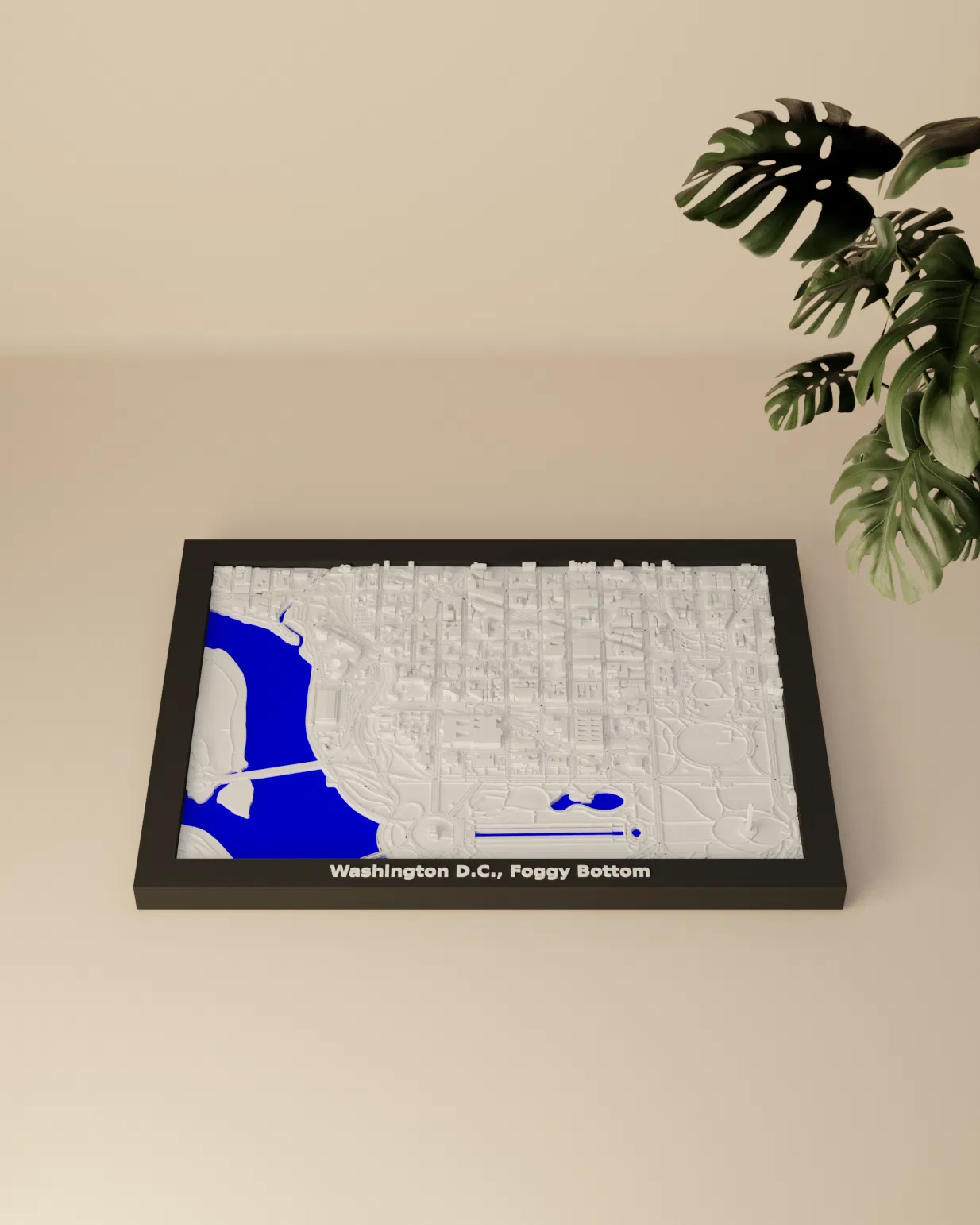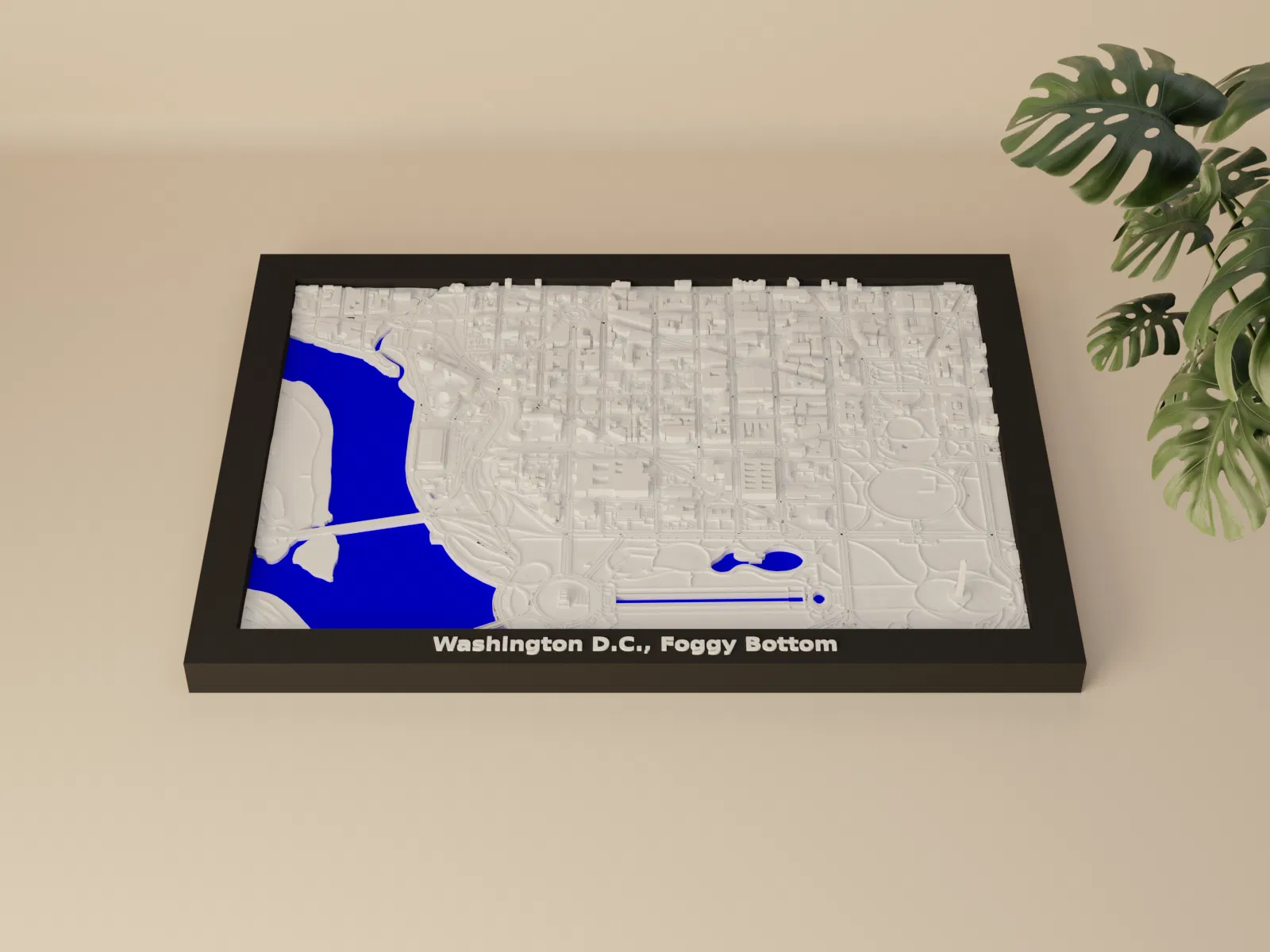 Bắt trọn vẻ đẹp cảnh quan thành phố Washington D.C., Foggy Bottom với mô hình thu nhỏ địa hình này! Mô hình 3D này thể hiện khu vực địa lý quanh tọa độ 38.896, -77.048 (LatLng).
