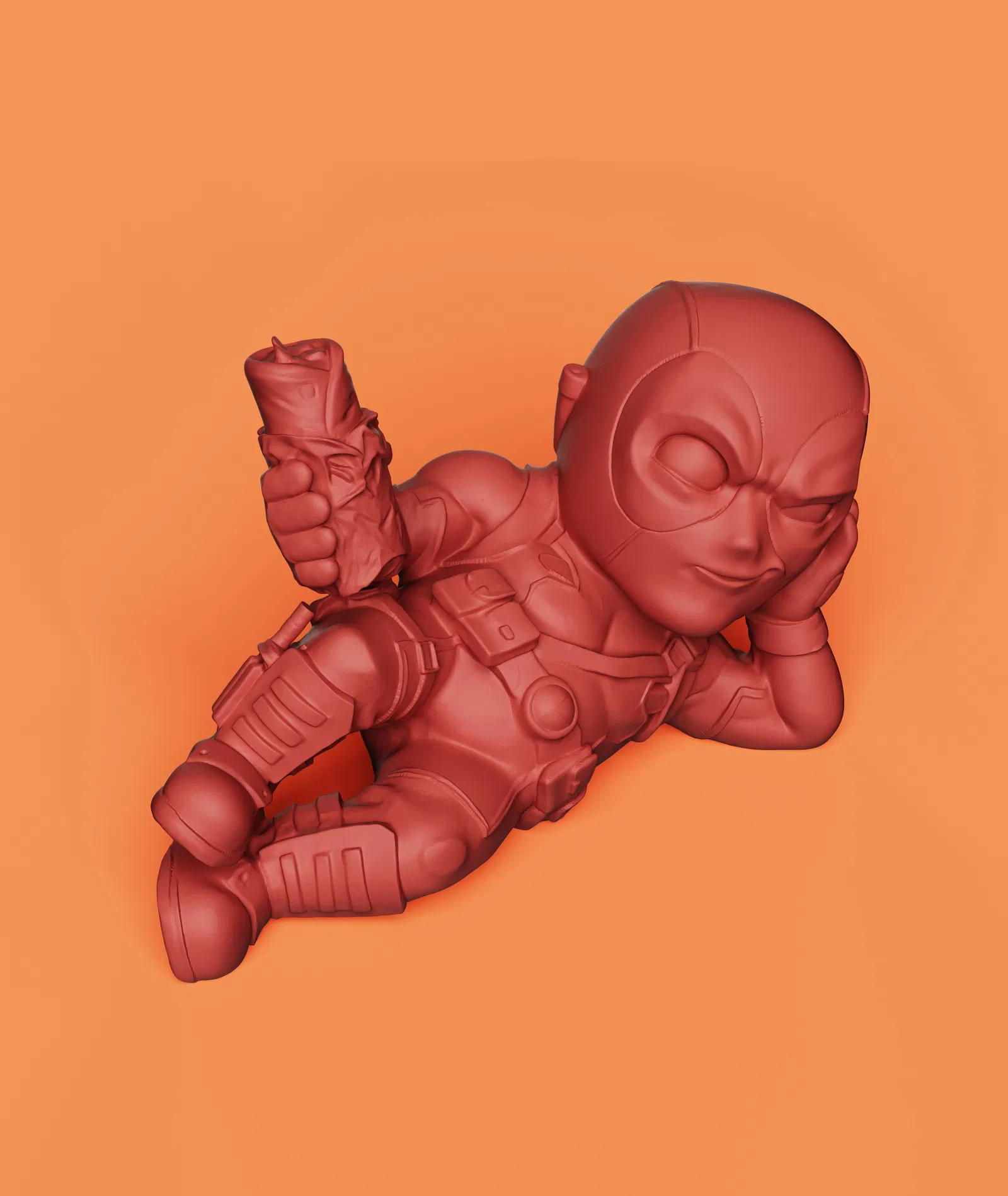 Tượng Chibi Deadpool hài hước, một người bạn đồng hành hoàn hảo cho bàn làm việc, in đẹp với ít công đoạn xử lý hậu kỳ. Tuyệt vời để tập tô màu! Bạn có thể mua giấy phép thương mại hoặc ủng hộ tác giả qua các đường dẫn.