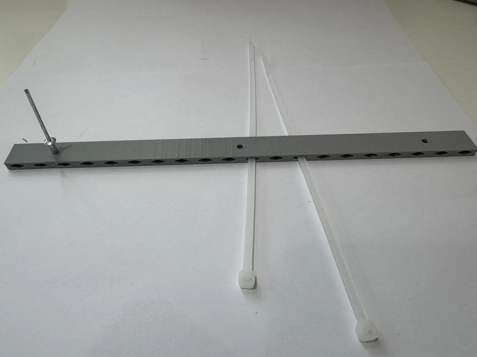 Thanh ray DIN kèm lỗ tán và khe để luồn dây rút, kích thước 250 x 15 x 5 mm. Rất tiện lợi trong tủ điện, trên bàn làm việc hoặc trong các hệ thống tự động hóa. In bằng PETG, PLA hoặc ABS với độ infill cao.