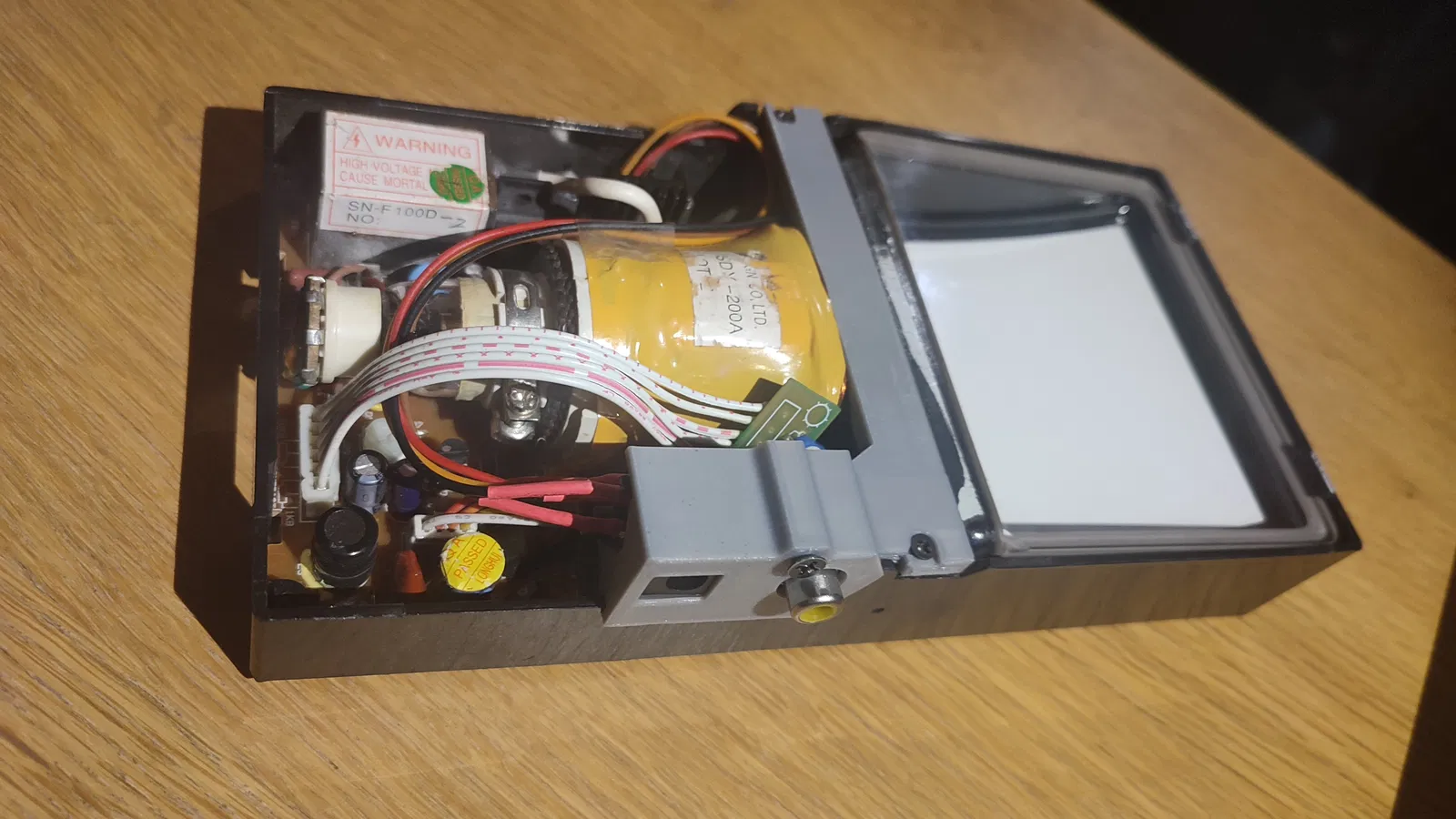 Một cái ngàm thay thế cho mấy cái màn hình CRT đen trắng 4'' dẹp này từ aliexpress, có chỗ gắn jack nguồn và jack video nè.
