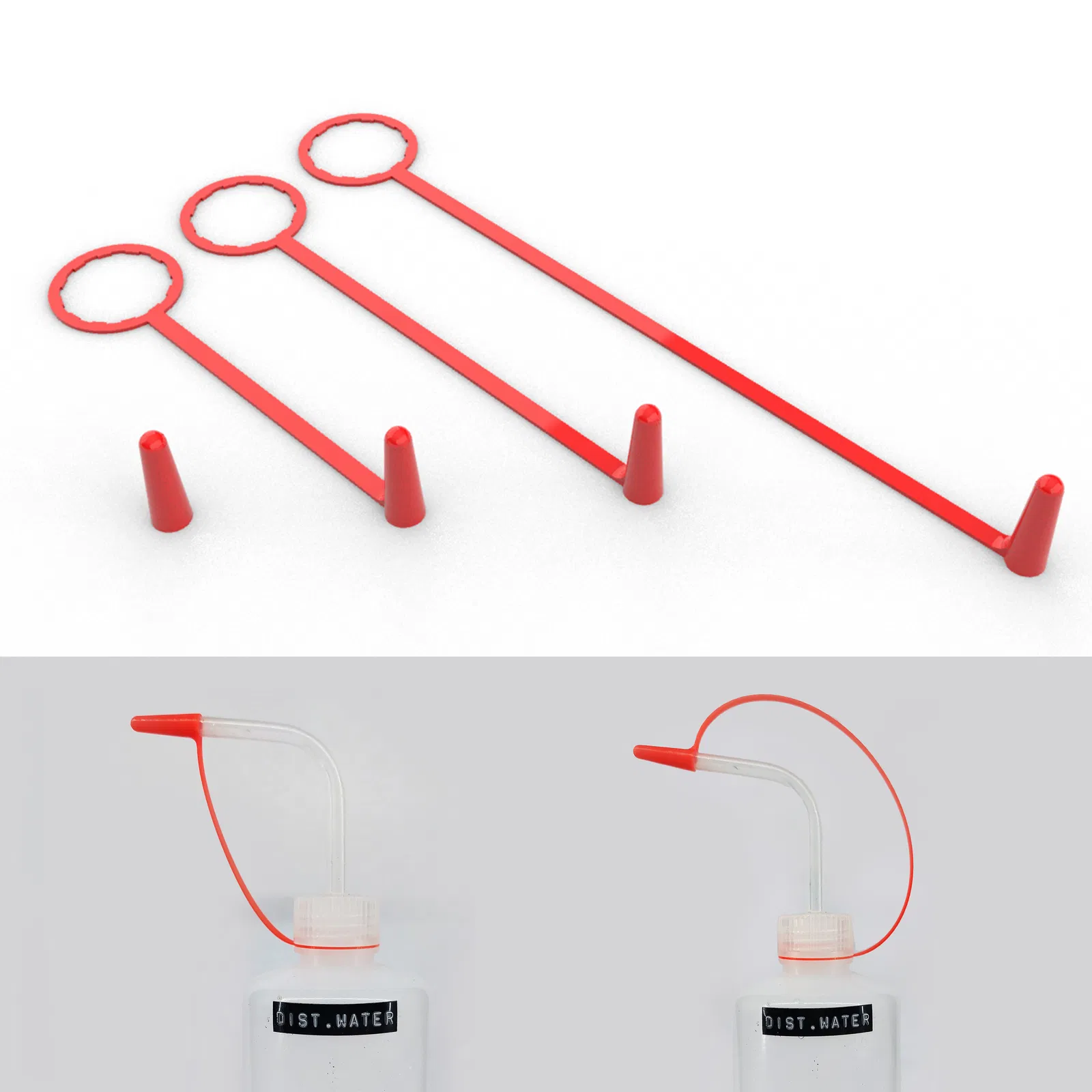 Nếu bạn, giống tôi, thích có nắp nối liền với chai, nhưng thấy nó cứ lòng thòng trước mặt thứ bạn muốn xịt dung dịch lên/vào, tôi đề xuất sử dụng phiên bản 160mm vòng ra phía sau vòi xịt như thế này:
