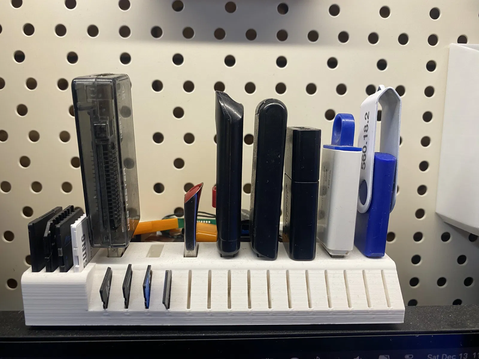 Giá đỡ USB và thẻ nhớ Micro SD cho bảng pegboard. Bản chỉnh sửa từ thiết kế gốc của Lalo_Solo, giúp sắp xếp thiết bị lưu trữ USB, SD một cách hiệu quả. Phù hợp cho bảng pegboard có lỗ 5.2mm và cách nhau 25mm. Nên in bằng PETG, cần giá đỡ.