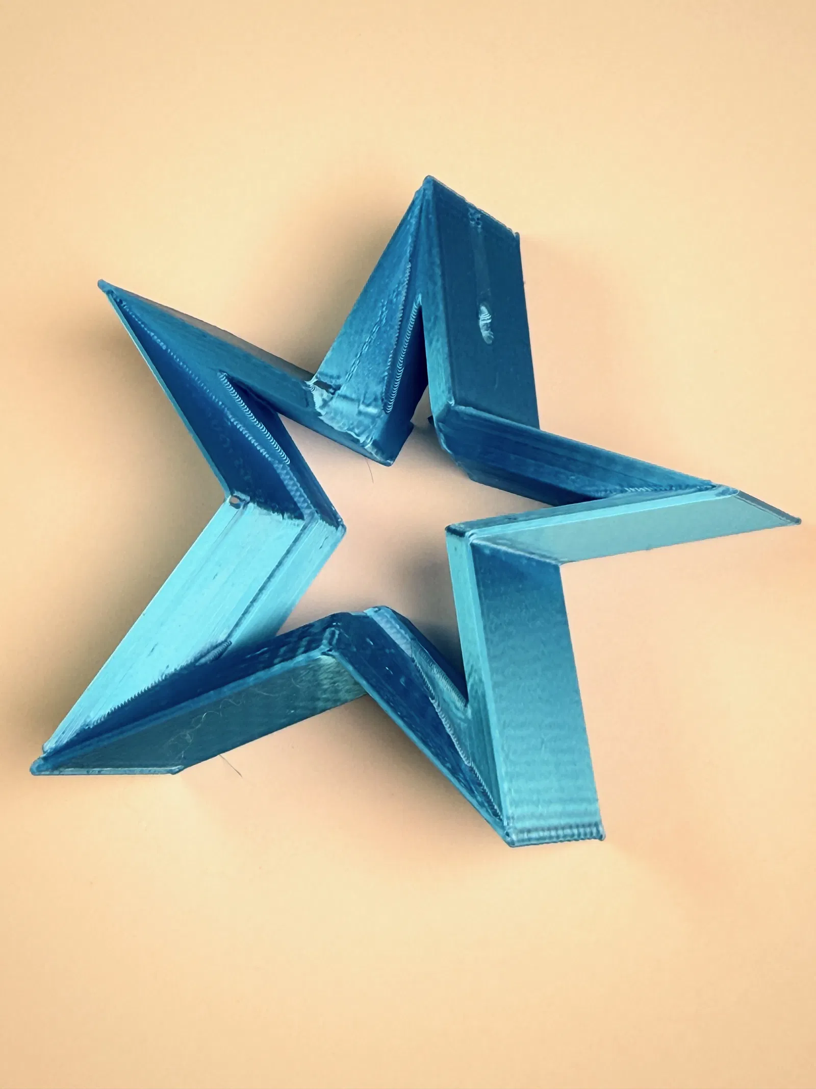 Vì các bề mặt đáy của các ngôi sao là tối thiểu, tui đề nghị giảm tốc độ in lớp đầu tiên xuống 30-40 mm. Nếu bạn vẫn gặp sự cố bám dính ở các đỉnh sao, hãy cân nhắc sử dụng chất kết dính giường in và một bề mặt in phẳng. Sự kết hợp này giữ các mẫu có diện tích bề mặt thấp tốt hơn.