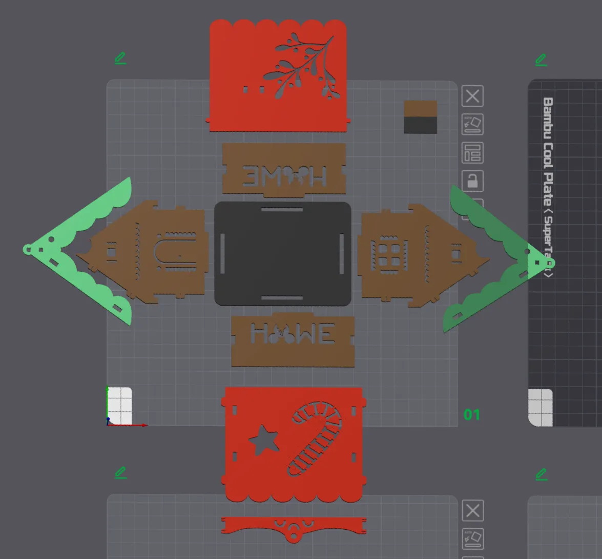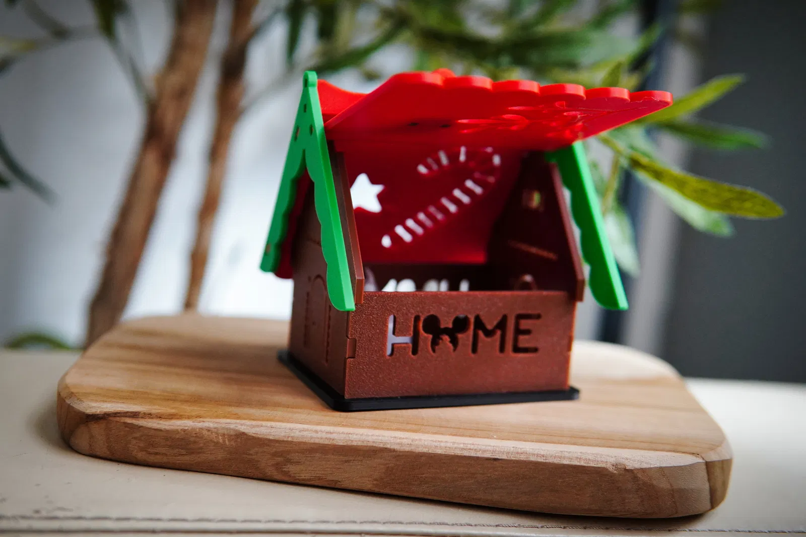 Một trong hai mái nhà có thể mở ra để bạn đặt nến tealight, đèn RGBW hoặc thậm chí là đèn tủ để chiếu sáng. Mình đã dùng kiểu đổ bóng Archimedean để tạo hiệu ứng thú vị, bạn có thể thay đổi nếu không thích.