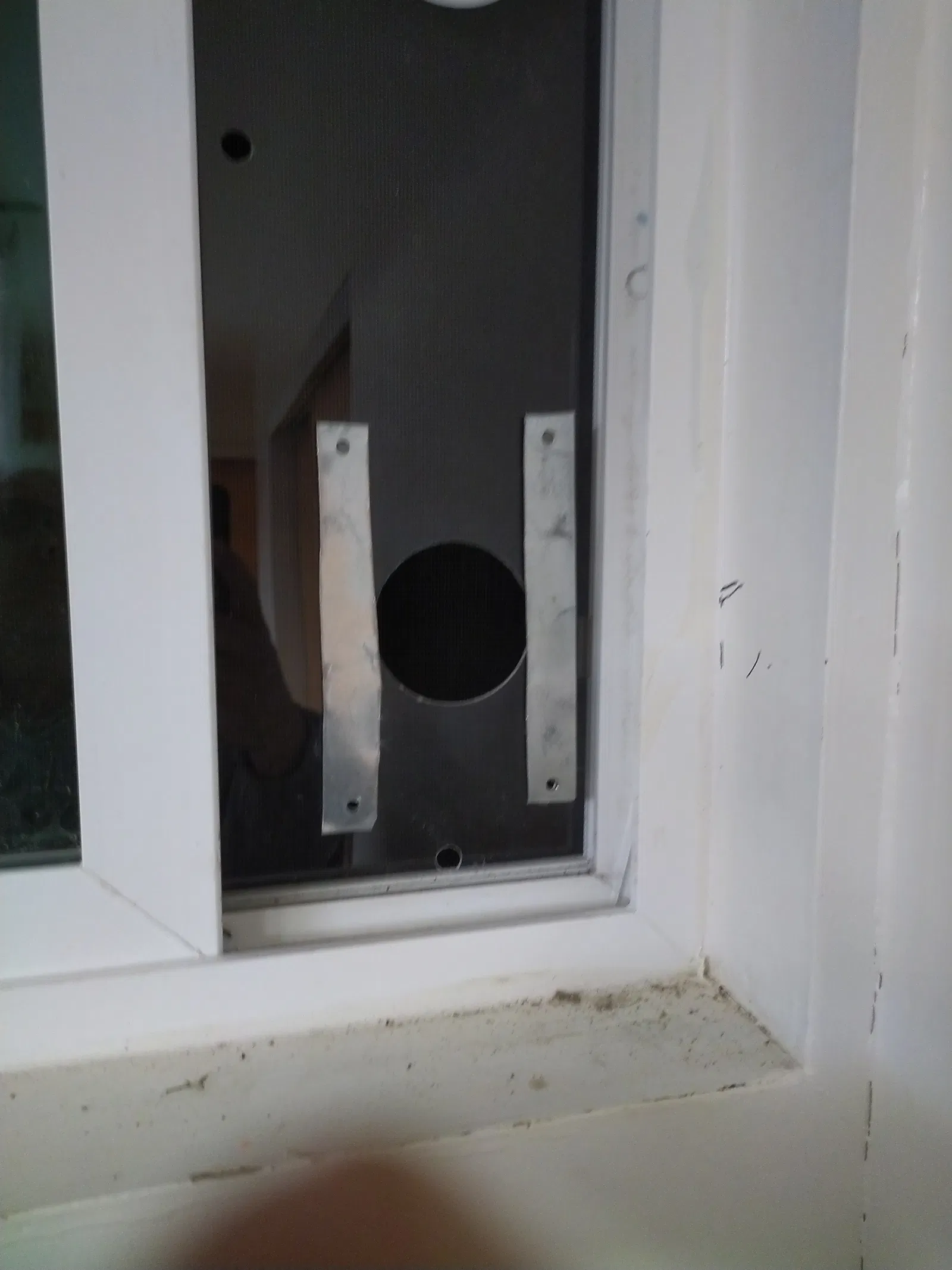 Cái nối ống máy sấy vô cái lỗ thông gió trên cửa sổ. Có nam châm ở mặt sau để gắn vô cái lỗ thông gió bằng kim loại, làm từ tấm acrylic.