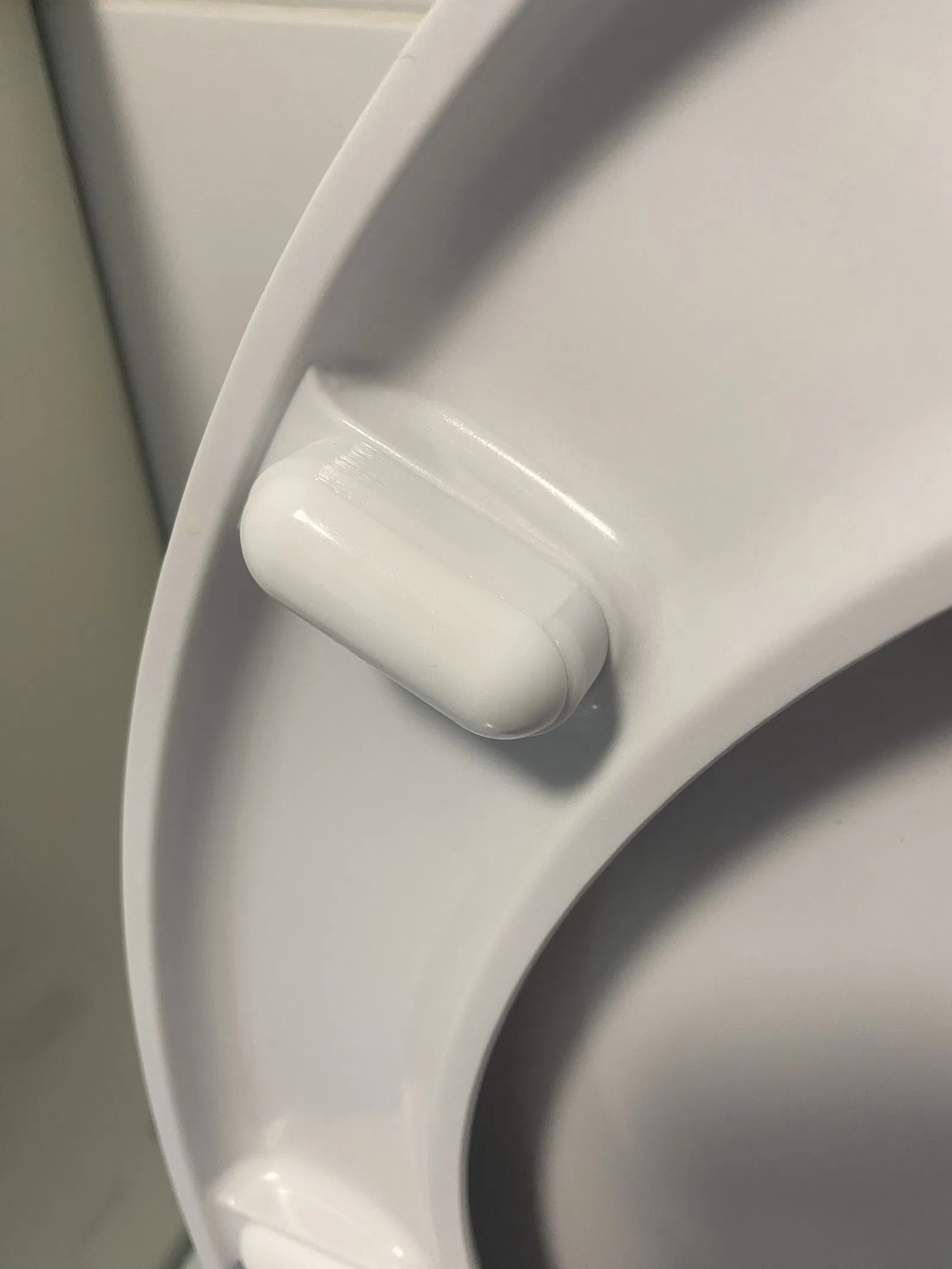 Tôi đã gắn thêm cái bidet vào bồn cầu và giờ thì nắp bồn cầu bị nghiêng. Để khắc phục, tôi đã thiết kế mấy cái "chân" nối dài/nâng nắp bồn cầu này để nó cân bằng lại.