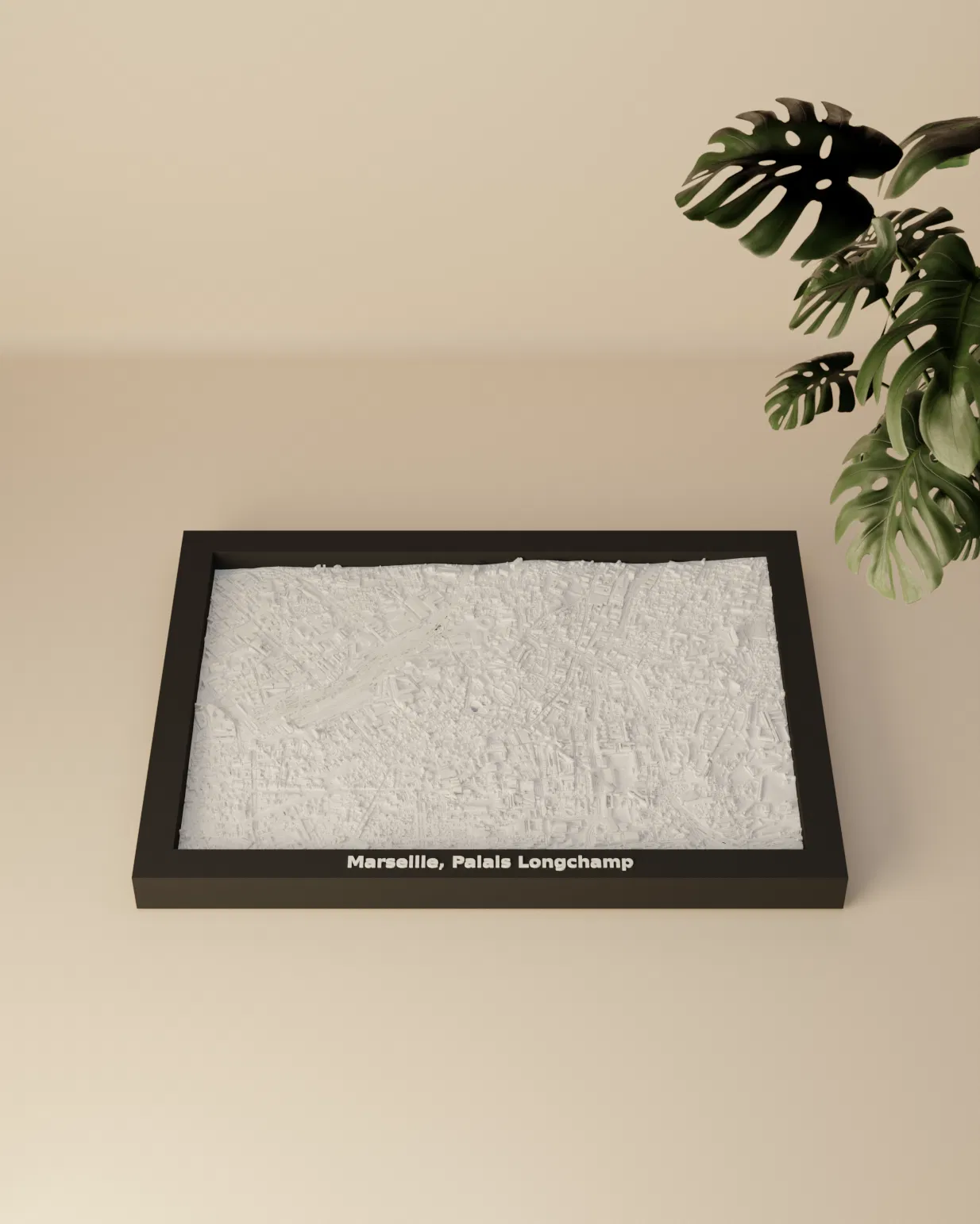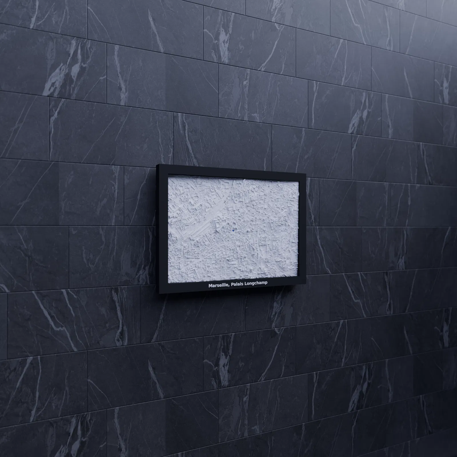 Lưu giữ vẻ đẹp cảnh quan thành phố Marseille, Palais Longchamp với mô hình địa hình thu nhỏ này! Mô hình 3D này đại diện cho khu vực địa lý xung quanh tọa độ địa lý 43.304, 5.395 (LatLng).