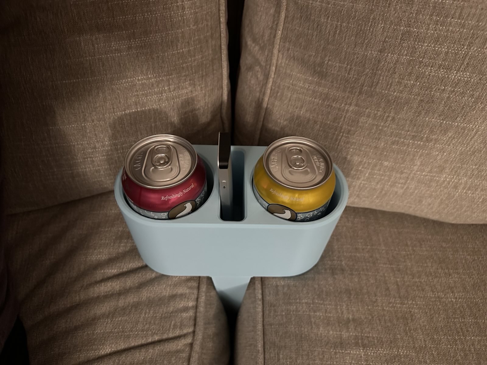 Biến thể của đế lót ly/mép ghế sofa để giữ remote + chai nước loại nhỏ. Nó cũng có một miếng chêm lớn hơn để giữ cố định tốt hơn trên ghế sofa nhà bạn.