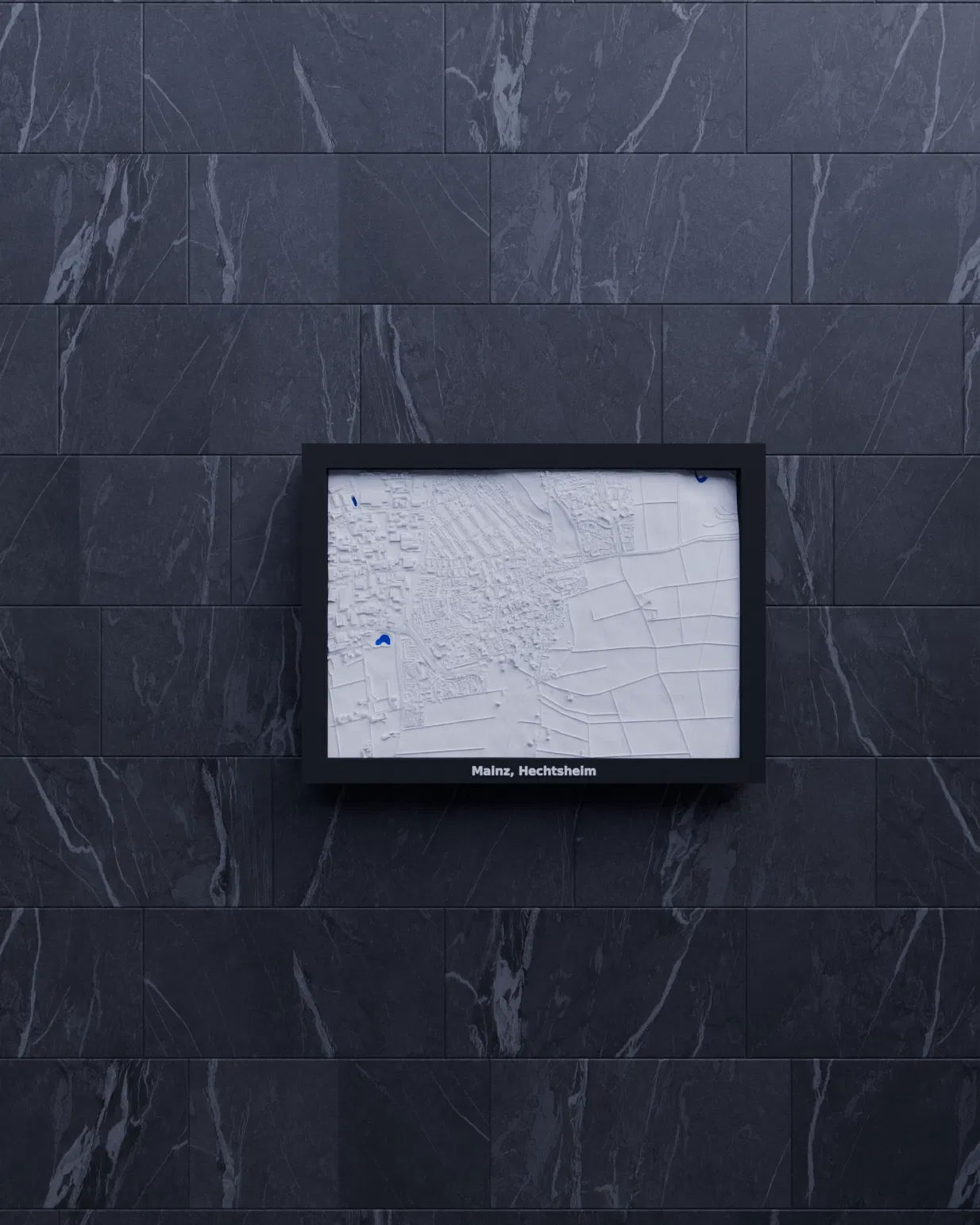 Mô hình địa hình thu nhỏ 3D của Mainz, Hechtsheim, Đức. Mô tả khu vực địa lý với kích thước 2.819 km x 1.970 km được thu nhỏ thành 170.5 mm x 119.5 mm. Lý tưởng cho việc trang trí, giáo dục hoặc hình dung kiến trúc.