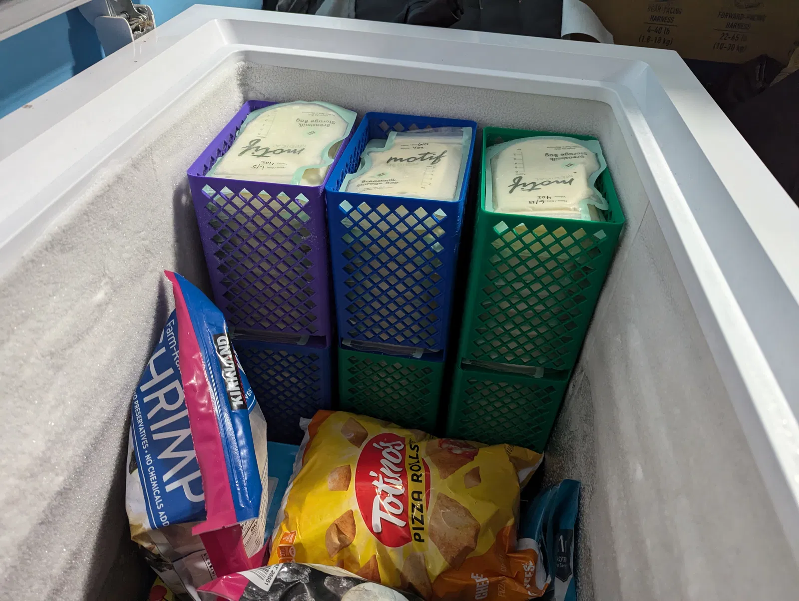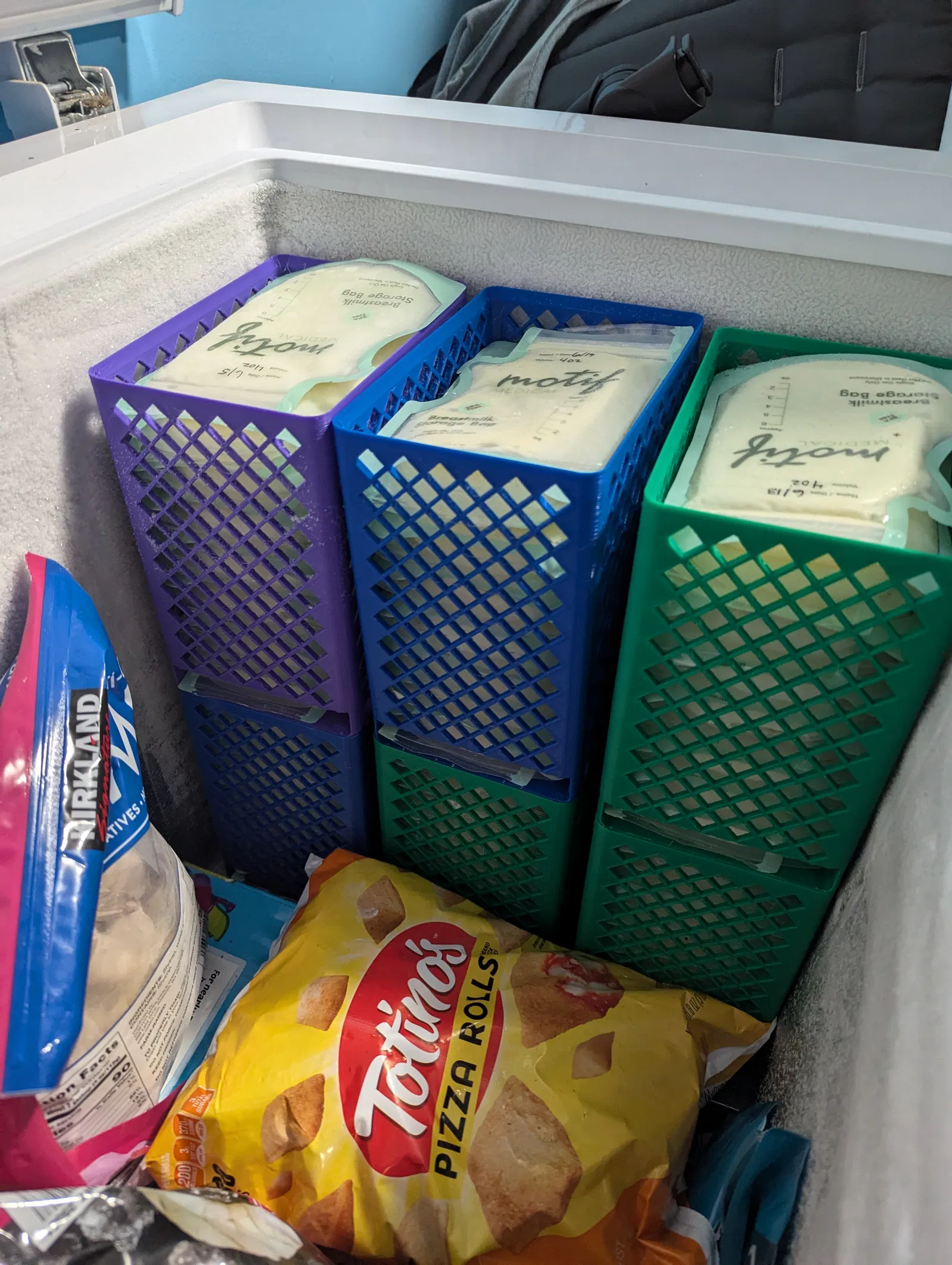 Giải pháp lưu trữ đơn giản cho túi trữ sữa mẹ Motif Medical (hoặc có kích thước tương tự).