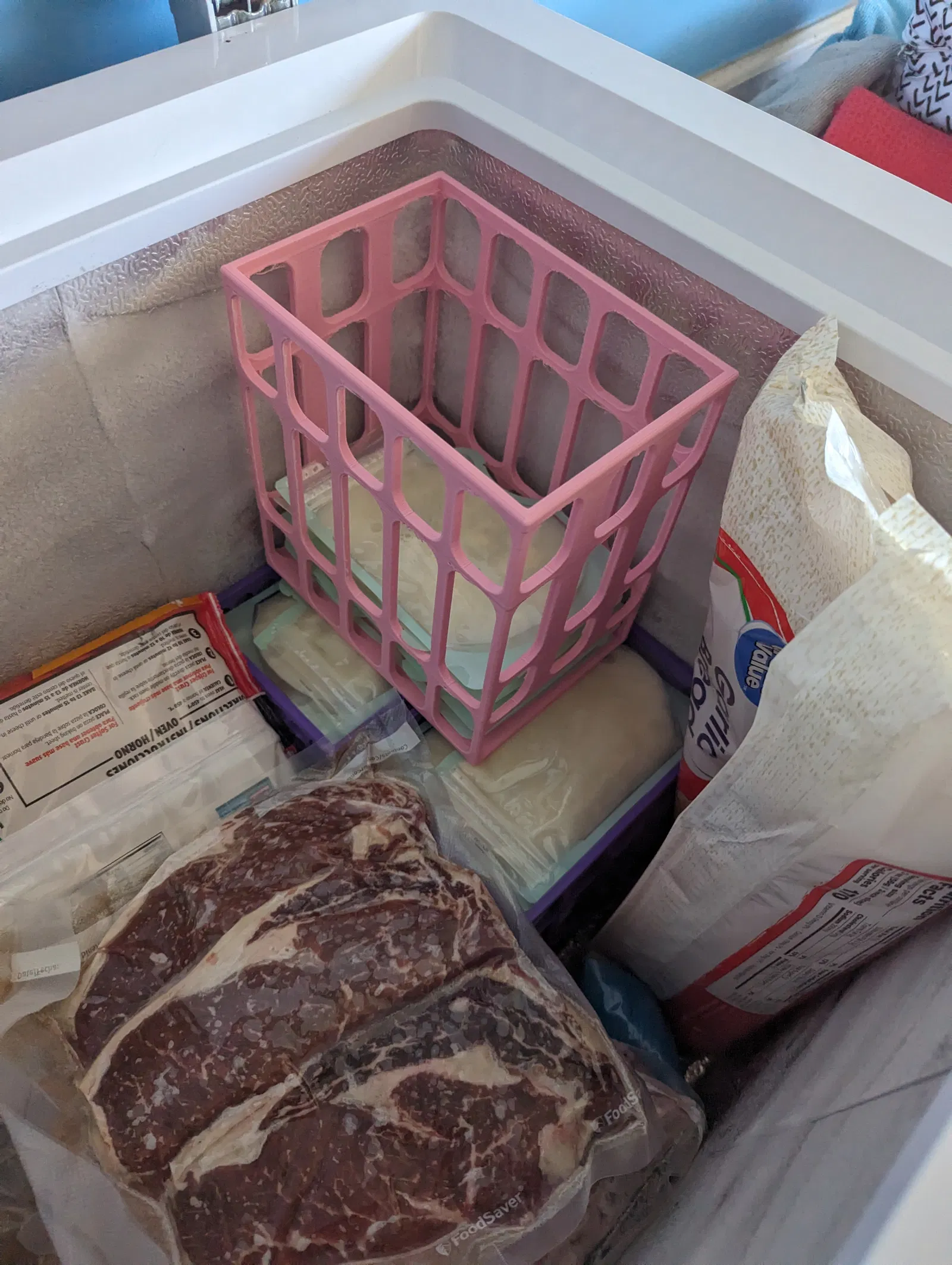 Cập nhật 20240721 (v2): Thiết kế lại phần lớn bộ phận. Nó tiêu thụ thêm khoảng 18g sợi nhựa (theo cài đặt slicer của tui). Bộ phận mỏng hơn 2mm (để dễ dàng đặt vào kệ tủ đông của tui hơn), thiết kế thành mới (mỏng hơn và tình cờ trông giống như một cái thùng sữa), phần trên/dưới được bo tròn để các thùng có thể xếp chồng lên nhau dễ dàng hơn.