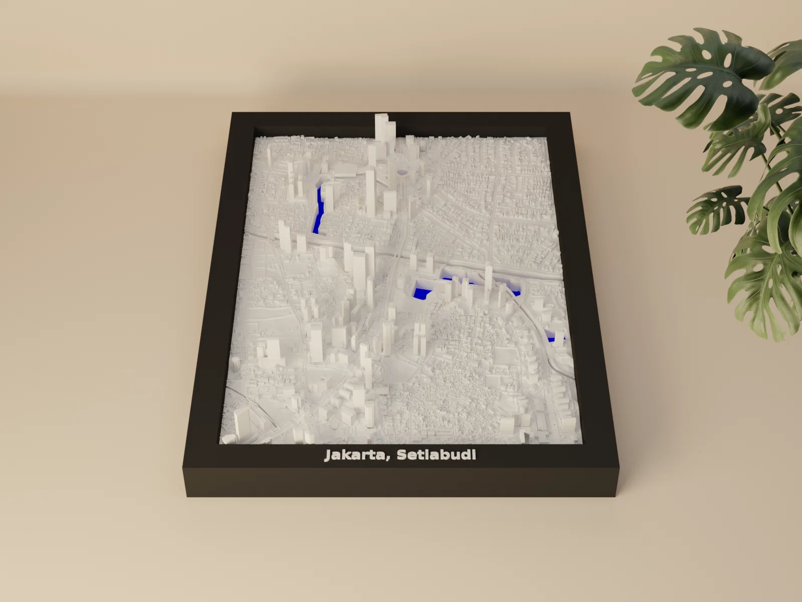 Lưu lại vẻ đẹp phong cảnh thành phố Jakarta, Setiabudi với mô hình địa hình thu nhỏ này! Mô hình 3D này đại diện cho khu vực địa lý xung quanh tọa độ -6.204, 106.823 (LatLng).