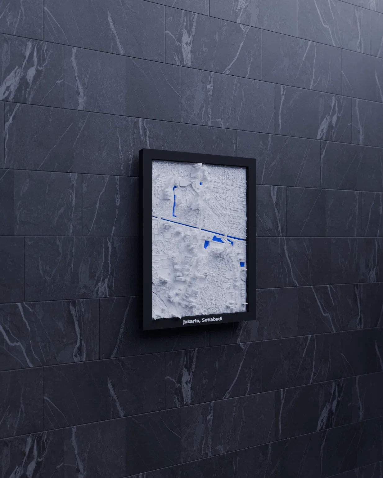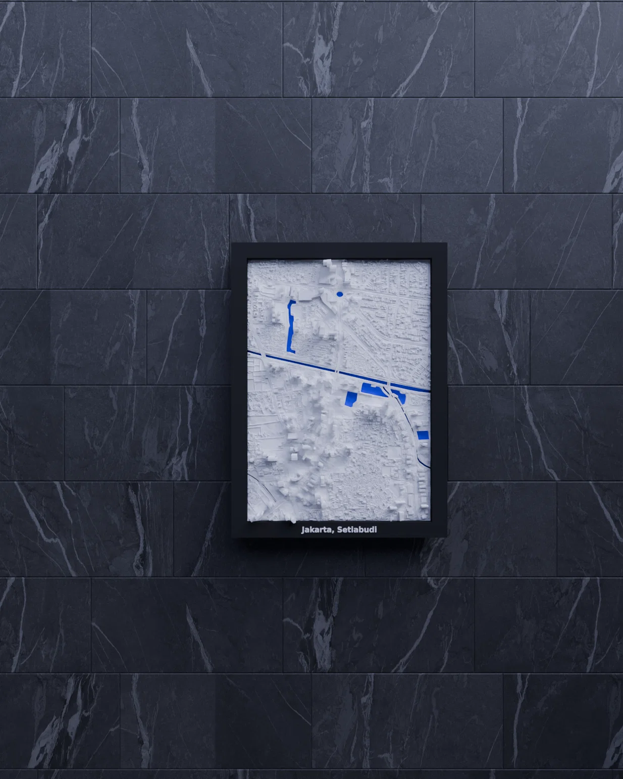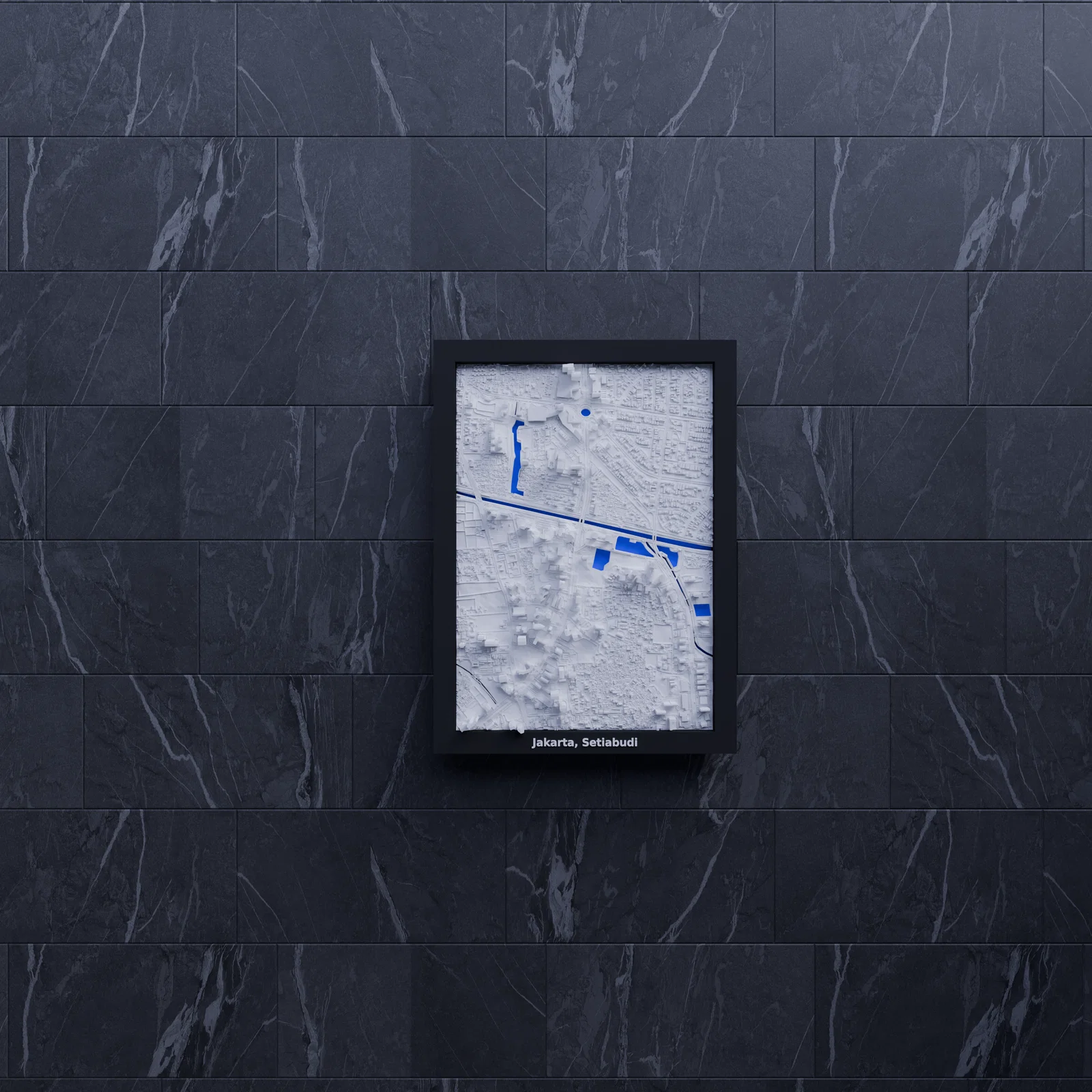 Tái hiện vẻ đẹp phong cảnh của Jakarta, Setiabudi với mô hình địa hình thu nhỏ 3D này! Kích thước 119.5 mm x 170.5 mm, mô hình được thu nhỏ từ khu vực địa lý 5.511 km vuông với tỷ lệ ~16499:1. Lý tưởng cho giáo dục, trang trí hoặc hình dung kiến trúc.