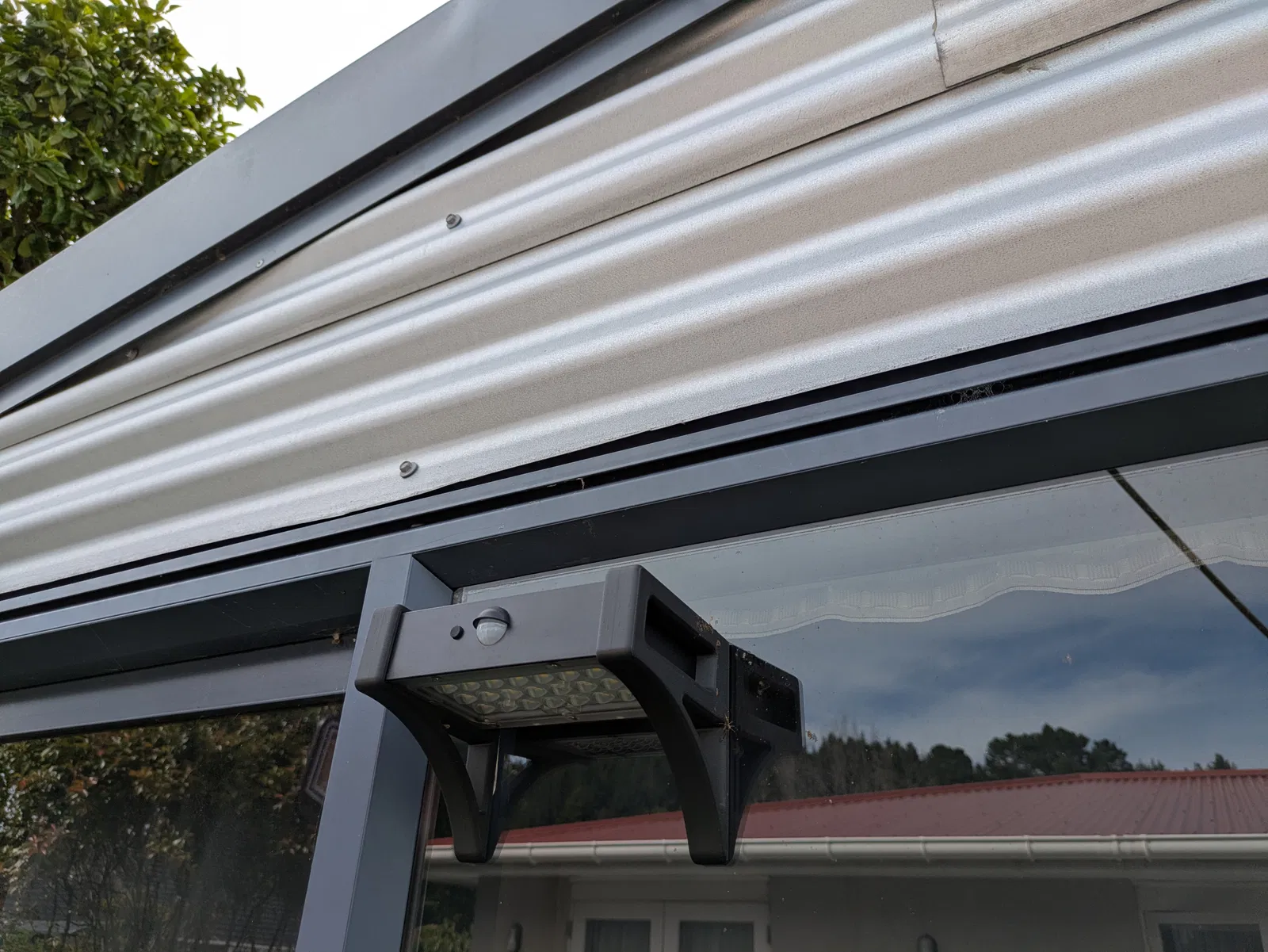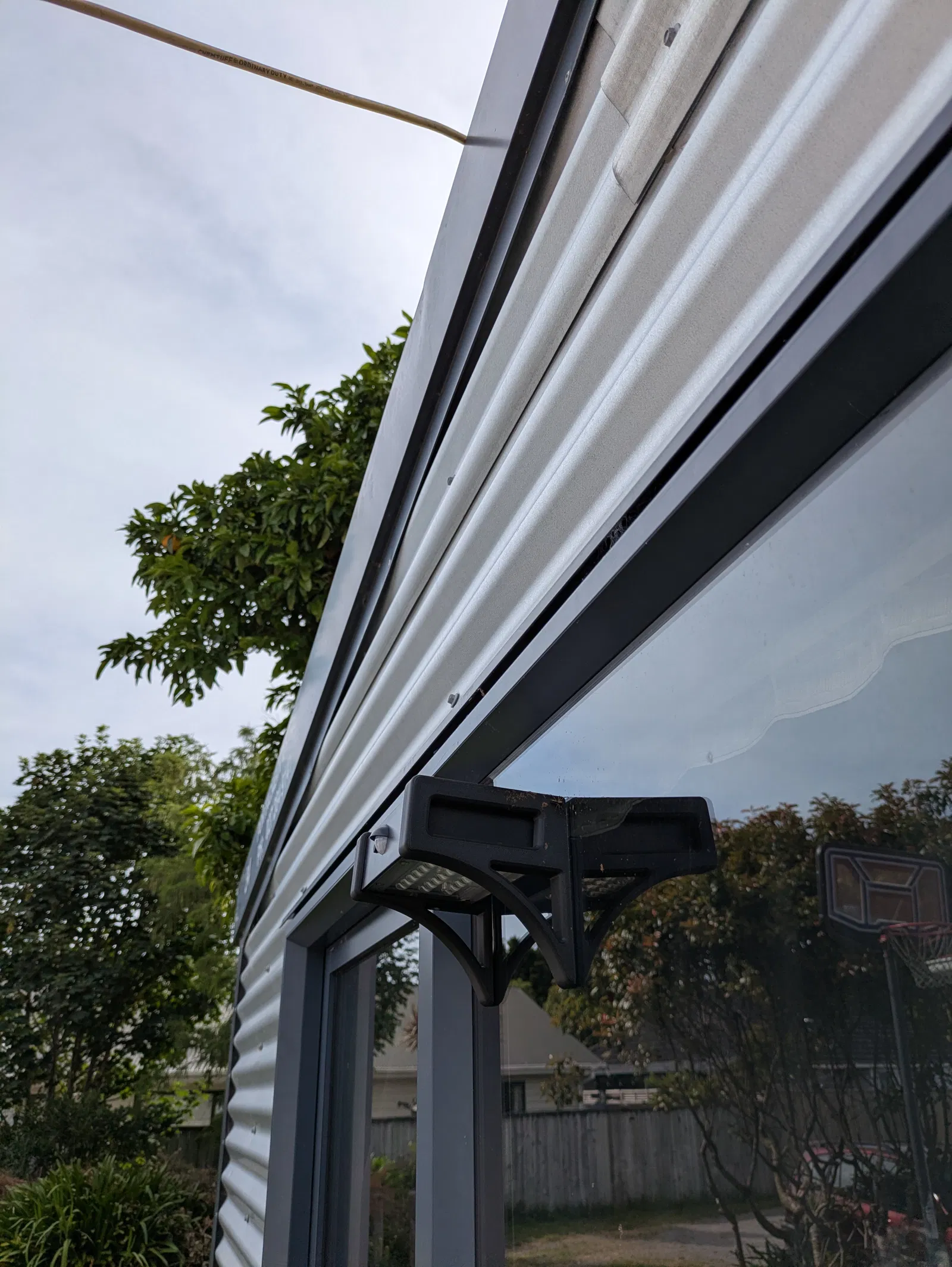 Đèn năng lượng mặt trời của tôi lúc trước có sẵn ốc vít và một cái giá đỡ. Nó cũng giữ đèn ở vị trí phẳng (không nghiêng). Tôi muốn gắn nó lên cửa sổ và hơi nghiêng để nước có thể chảy xuống khỏi đỉnh đèn khi trời mưa (và để nước mưa chảy đi mà không bị đọng lại), đồng thời cũng để ánh sáng chiếu ra xa bề mặt một chút, nhưng không ảnh hưởng quá nhiều đến việc sạc năng lượng mặt trời (Các tấm pin được tích hợp trên đỉnh đèn).
