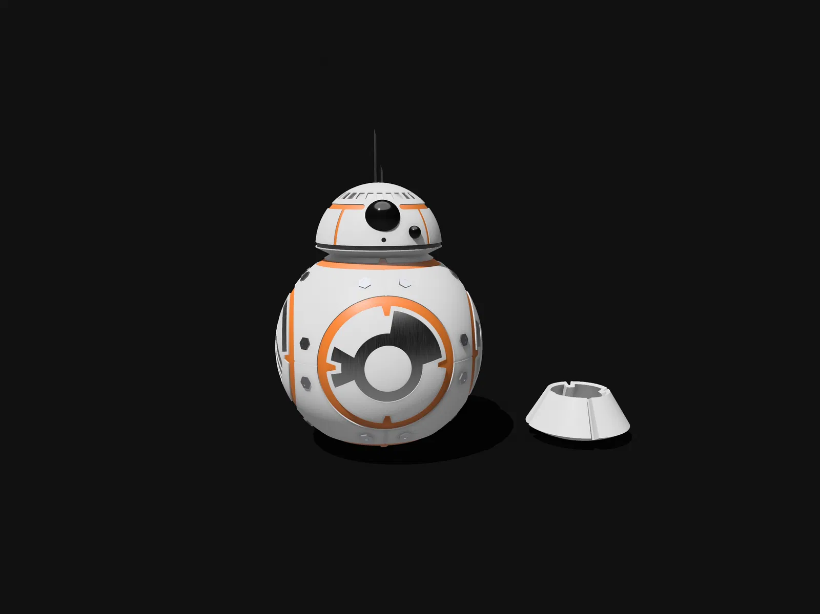 Một phiên bản diễn giải lại của BB8 từ Star Wars. Cái nắp trượt vô ở đáy của mô hình. Nếu bạn để vật nặng vô cái nắp rồi để lên thì nó đứng thẳng lên liền.