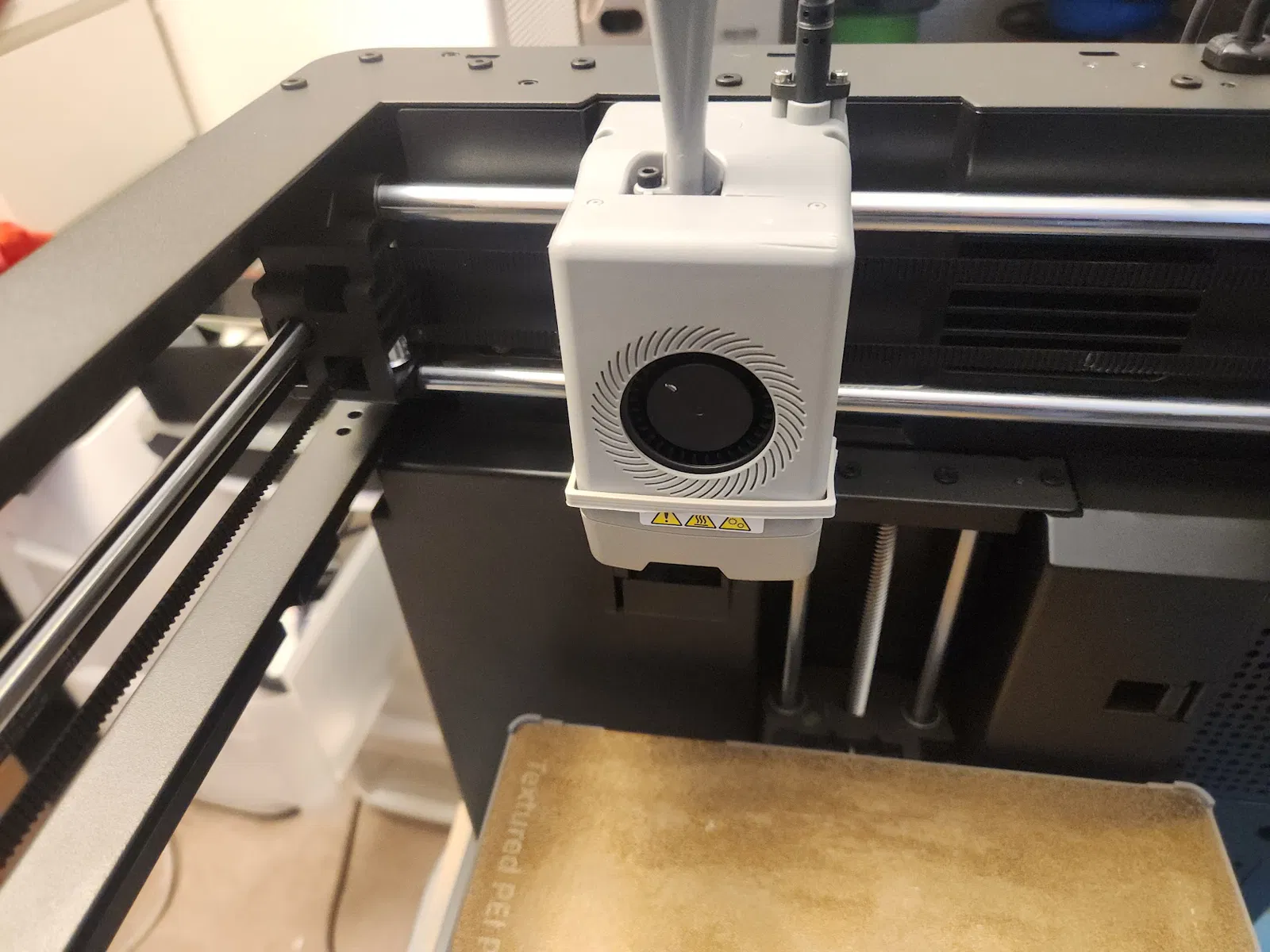 Có một vấn đề là cái nắp quạt của AD5X, vốn được gắn bằng nam châm, đôi khi bị vướng hay rung lắc mạnh rồi bung ra ngoài. Nguyên nhân chính là do người ta dùng keo dán nam châm hơi mềm, xài lâu ngày mau bị mòn.