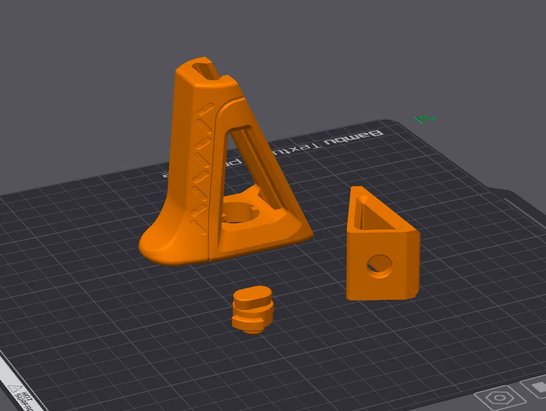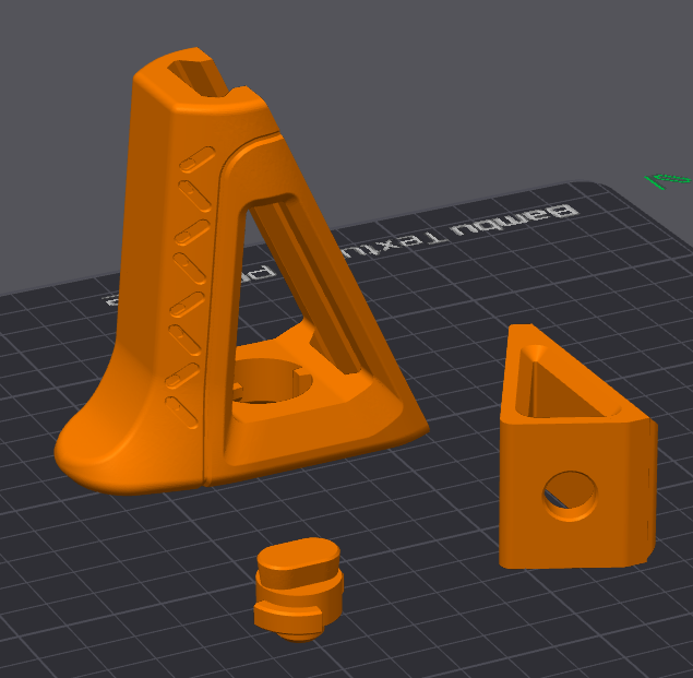 Cái tay cầm này gồm ba bộ phận in 3D và không cần bất kỳ phụ kiện nào để gắn lên blaster của bạn. Phần thân và phần khóa đều cần vật liệu hỗ trợ (support material), và tôi khuyên bạn nên in theo hướng dẫn bên dưới để đạt được độ bền và kết quả bề mặt tốt nhất.