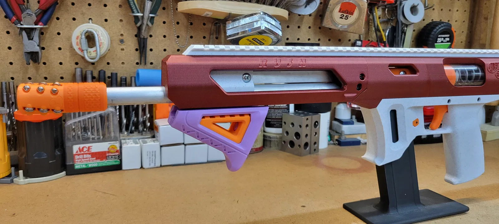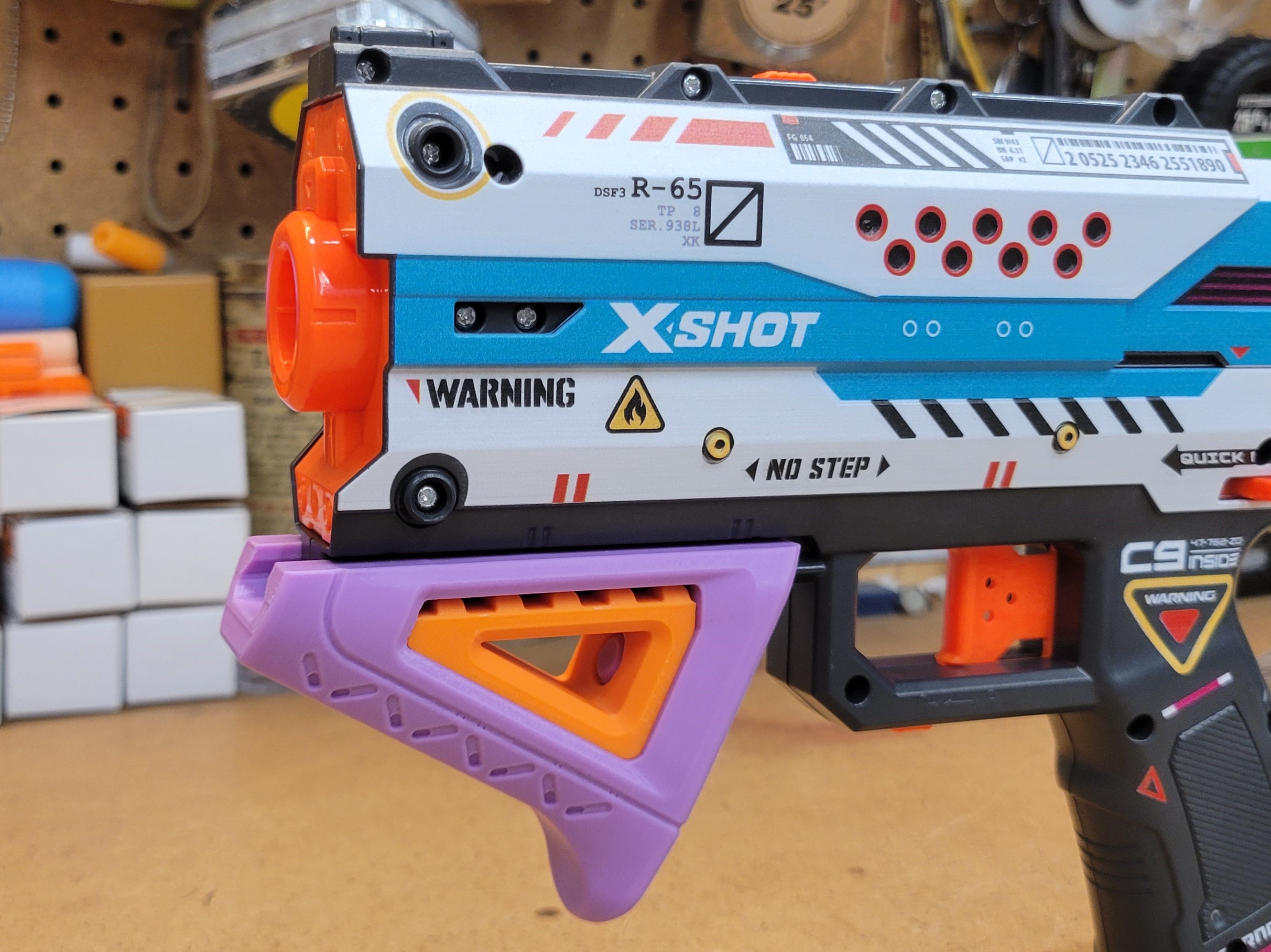 Tay cầm góc kiểu picatinny lấy cảm hứng từ Nerf Pro Torrent, được thiết kế để gắn vừa vặn mà không cần bất kỳ phụ kiện nào. Phiên bản in 3D này có thể được gắn trên mọi ray picatinny tiêu chuẩn.