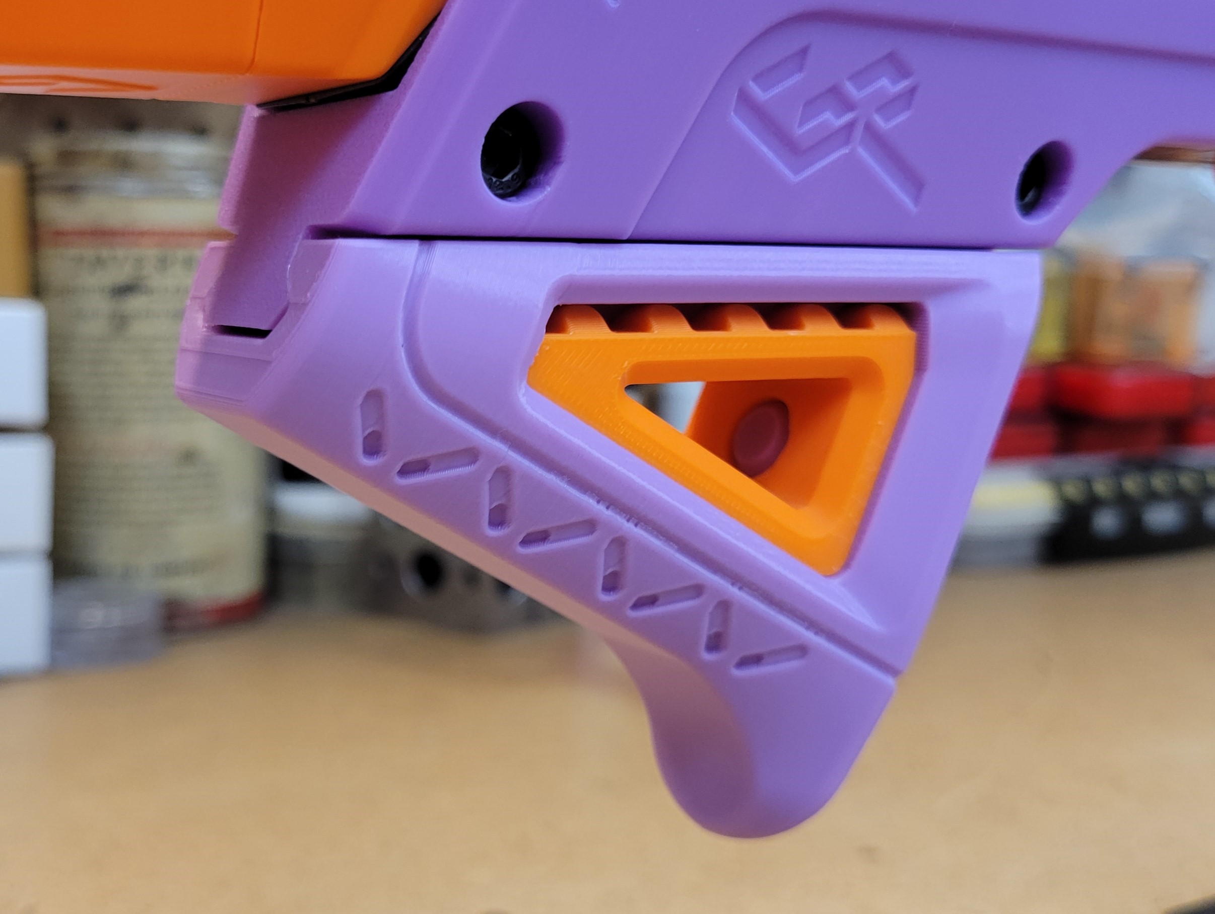 Xin chào mọi người! Đây là một cái tay cầm góc kiểu picatinny được lấy cảm hứng từ tay cầm trên khẩu Nerf Pro Torrent. Tôi đã thiết kế cái này để dùng với xịn xò của GP3D cho khẩu Nerf Pro Torrent, nhưng nó cũng nên gắn được trên bất kỳ ray picatinny tiêu chuẩn nào. Tôi đã lấy tay cầm góc kiểu picatinny của Captain Slug dành cho Caliburn làm điểm khởi đầu khi thiết kế cái tay cầm này. Tôi thích cái góc và cảm giác của tay cầm trên khẩu Torrent zin, nên đã cố gắng mô phỏng cả hai khi tạo dáng cho cái tay cầm này.