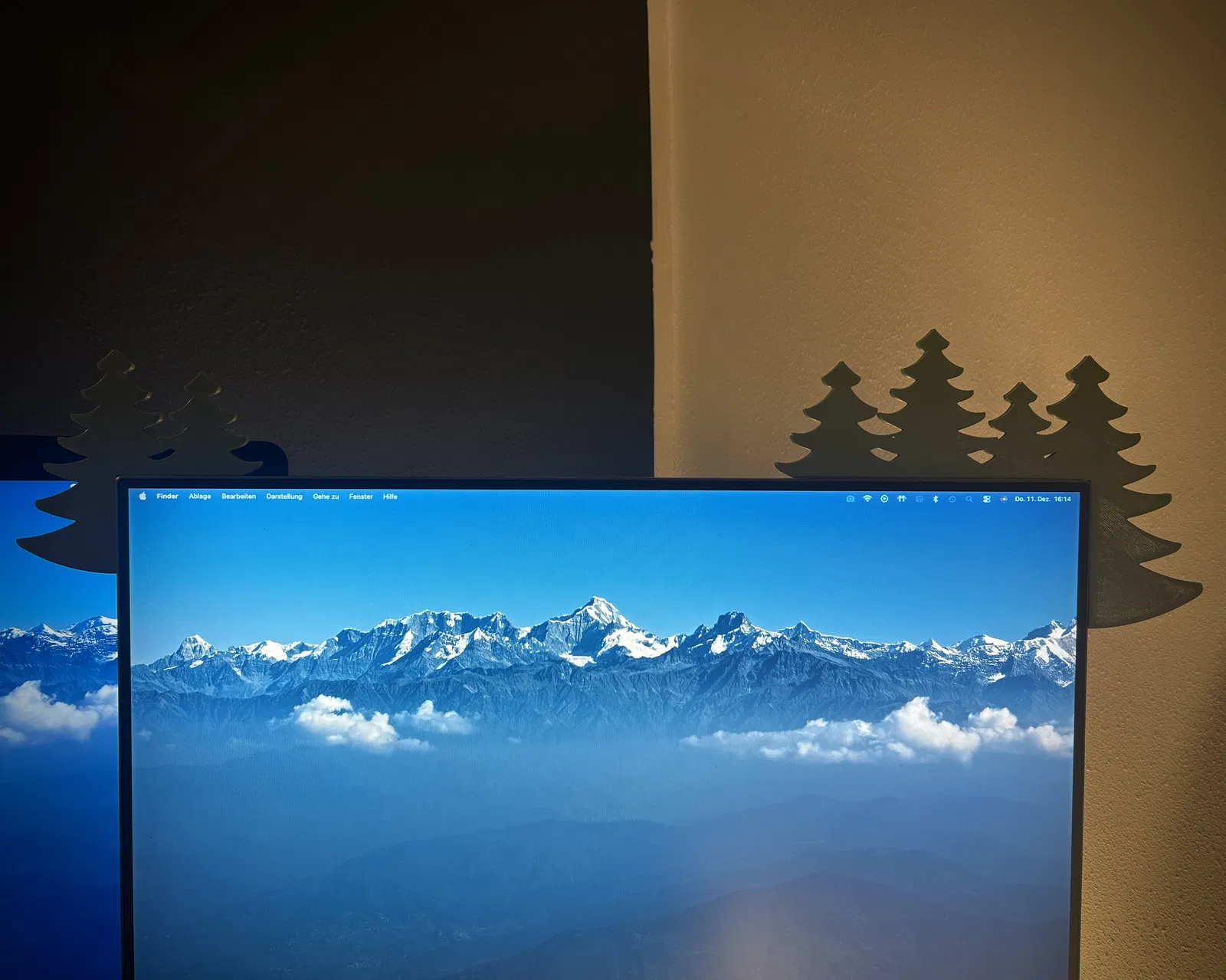 Cái món đồ trang trí cây thông Noel này có thể đặt ở cạnh trên bên trái hoặc bên phải của khung cửa hay màn hình máy tính. Nó đứng được mà không cần gắn thêm gì hết, tạo không khí lễ hội liền cho căn phòng.