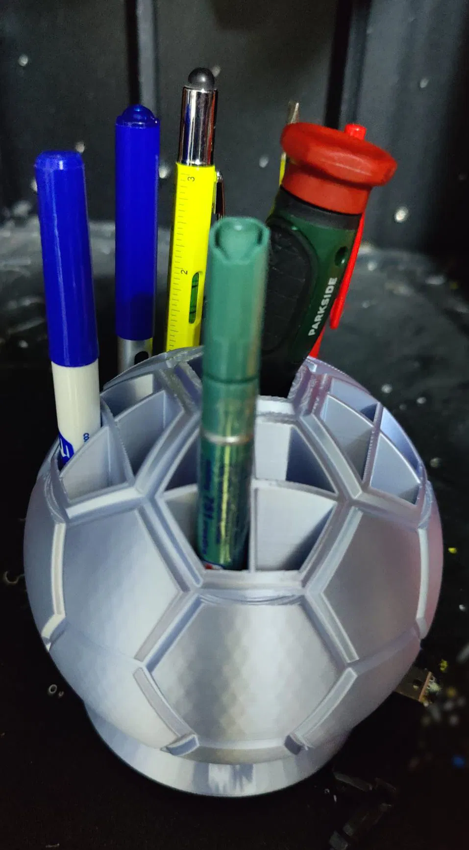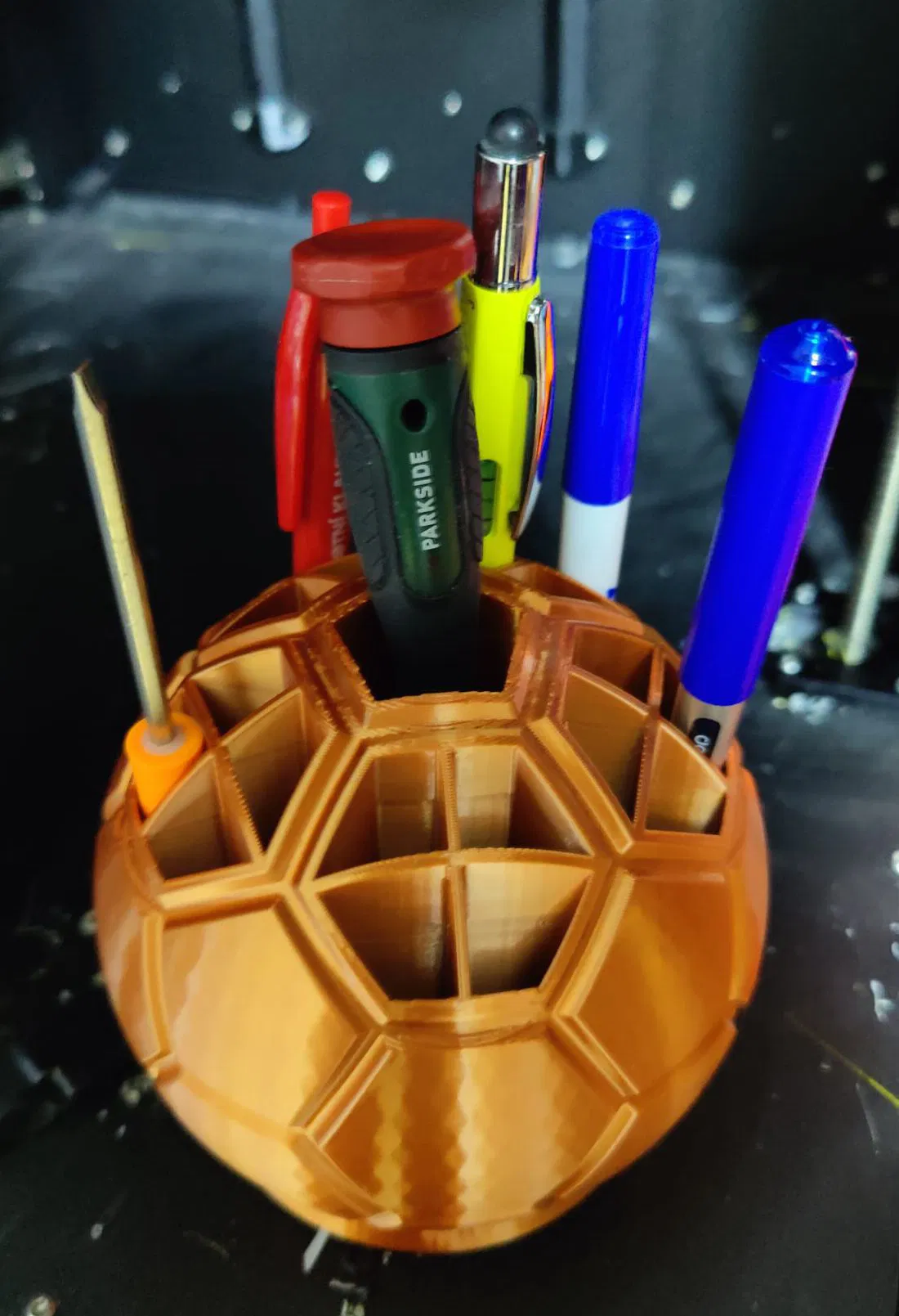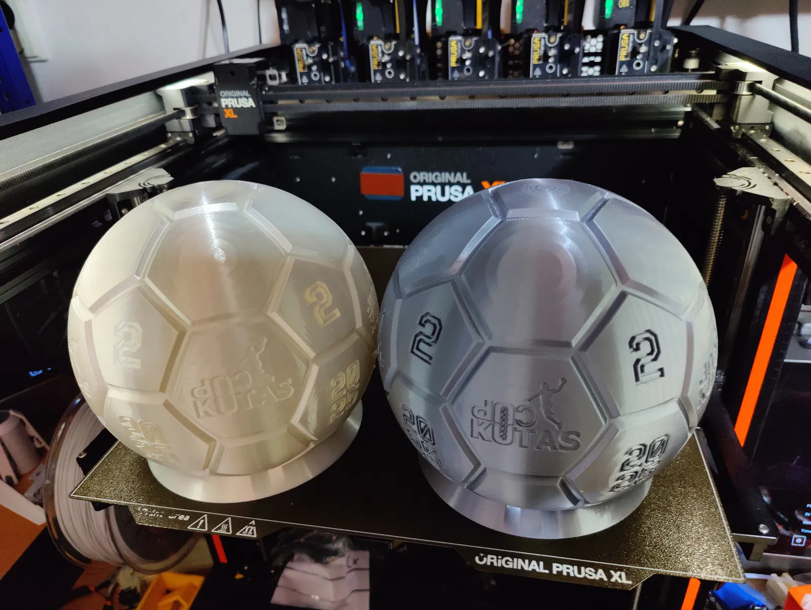 Đường kính là 12cm và có thể thay đổi trong phần mềm cắt lớp (slicer). Các sợi filament bóng như Silk PLA trông đẹp nhất với mẫu này. Tôi có thể tùy chỉnh theo yêu cầu, ví dụ như làm cúp cho một cuộc thi cụ thể.