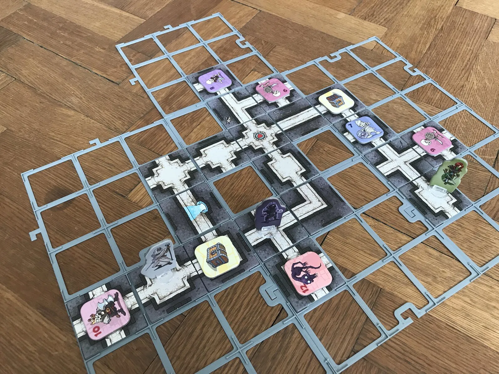 Tui bị mấy cái lưới ô gạch khác làm hơi bực mình (khớp nối cứng quá với bị nhỏ) nên tui tự làm cái này. Khớp nối hình chữ L bự chảng, dễ dàng ghép lại với nhau để mở rộng bàn cờ theo ý muốn. Cái này tiện lắm nha, lỡ bàn cờ có bị xê dịch gần mép bàn thì cũng không sao. Chơi với mấy đứa nhỏ là hết sảy, giữ bản đồ/hầm ngục cố định, lỡ có va quẹt gì cũng không sợ.