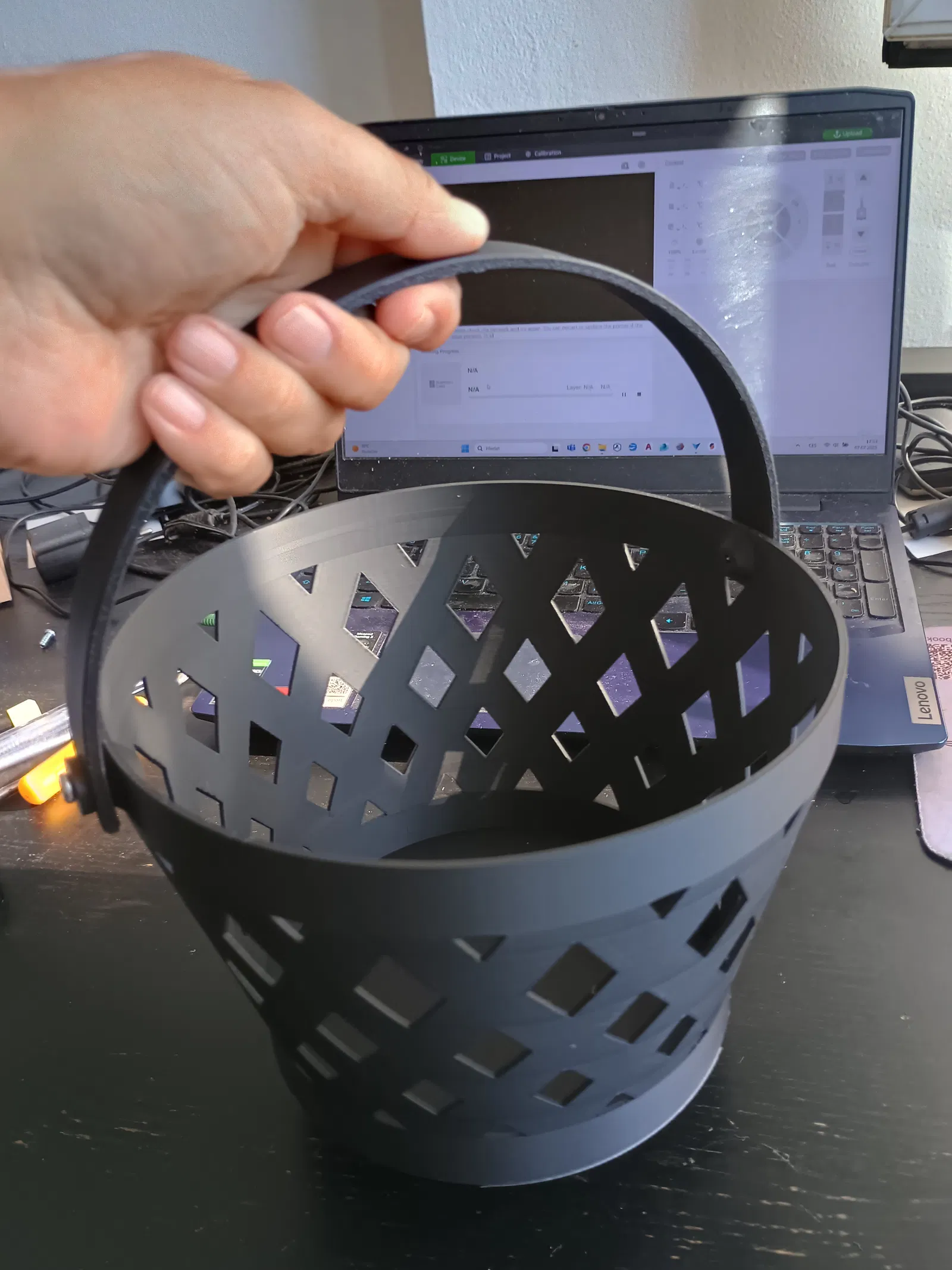 Đã test với PLA, lớp cao 0.2mm, ngẫu nhiên điểm bắt đầu lớp, có gờ (brim) cho phần tay cầm.