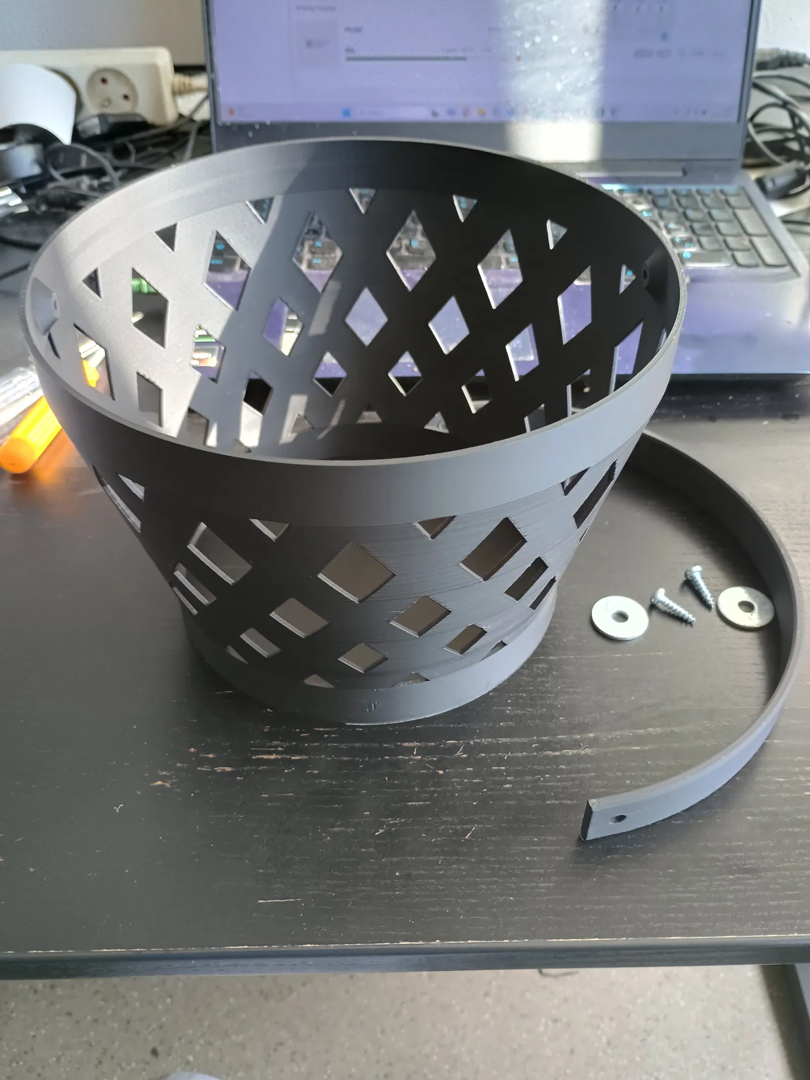 Rổ tròn dễ in với tay cầm, có 2 phiên bản cho bé. Kích thước đường kính trong 200mm, cao 140mm (không tính tay cầm). Cần khoảng 230g vật liệu PLA, in không cần support. Lắp ráp đơn giản với vít 4x16mm (có long đền) hoặc 4x12mm (không có long đền).