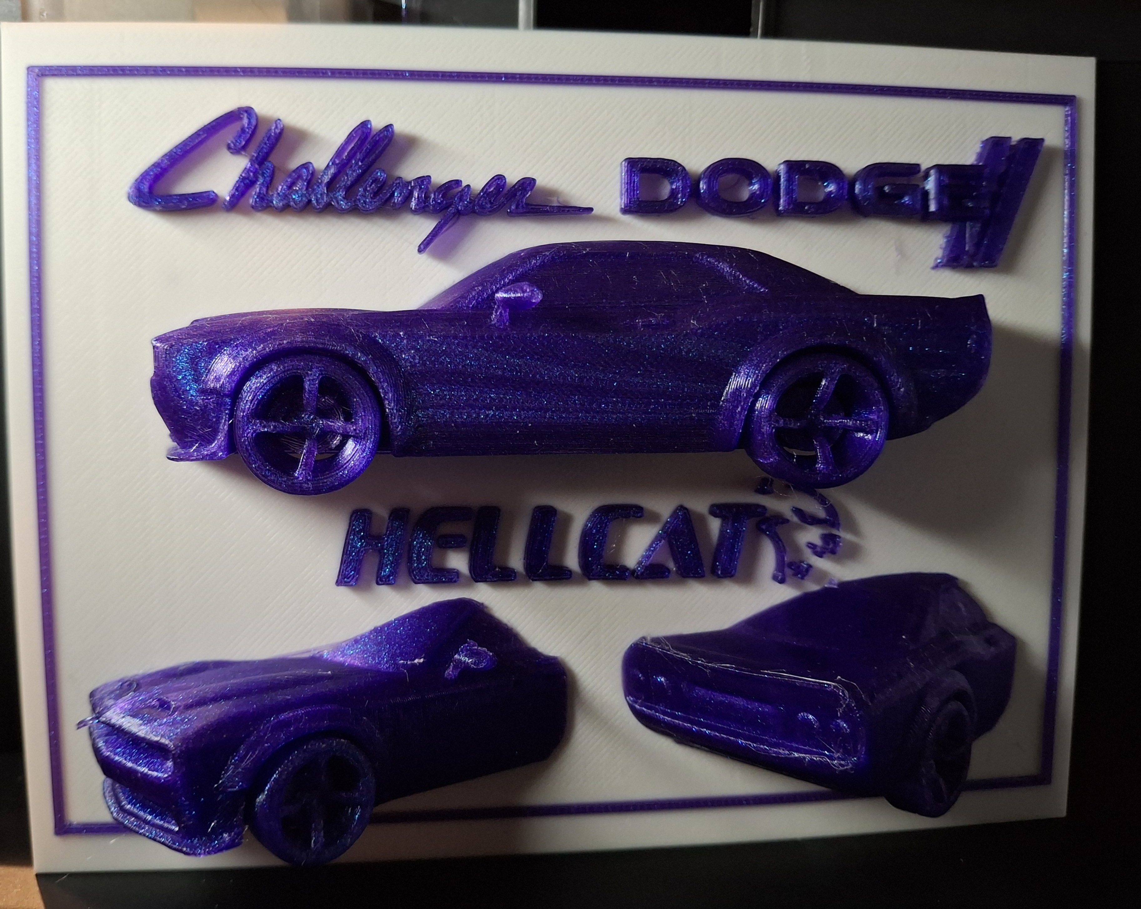 Mô hình xe Dodge Challenger HellCat cực chất cho anh em đam mê xe cơ bắp Mỹ. Kích thước 160 x 120 x 32, in bằng PLA với file STL. Lưu ý cẩn thận khi gỡ phần chân đế bánh xe để tránh làm gãy nhé!