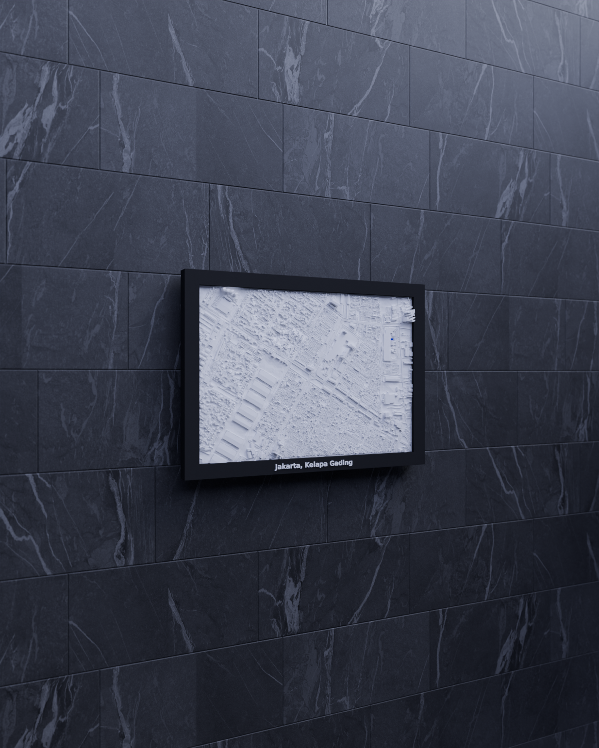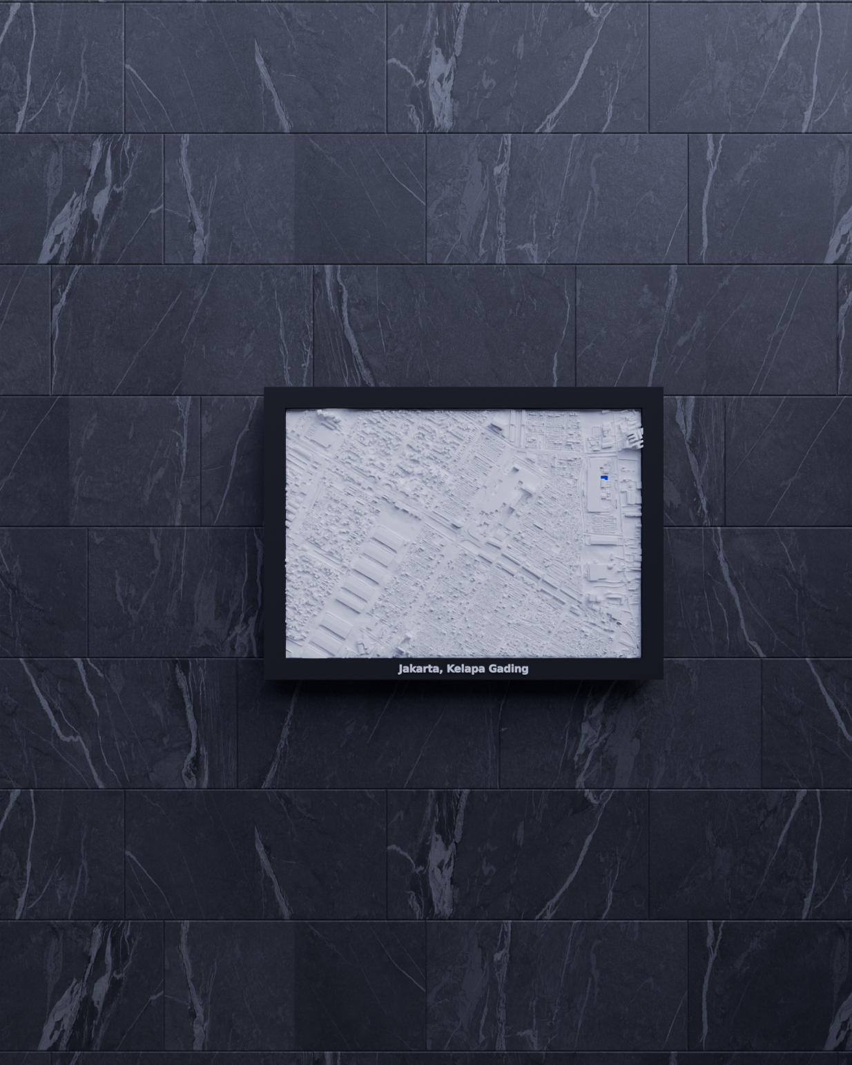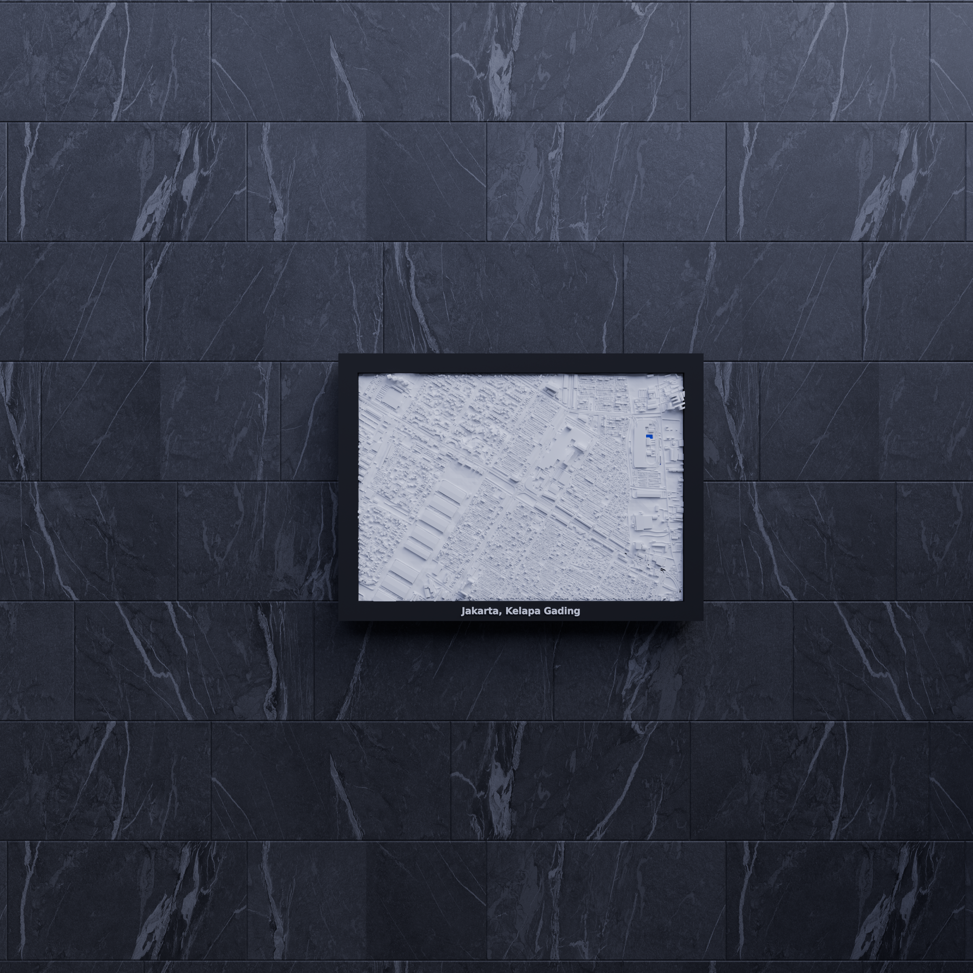 Mô hình địa hình thu nhỏ 3D của Jakarta, Kelapa Gading, Indonesia. Kích thước 170.5 mm x 119.5 mm, mô phỏng cảnh quan thực tế. Lý tưởng làm đồ trang trí hoặc quà tặng giáo dục.