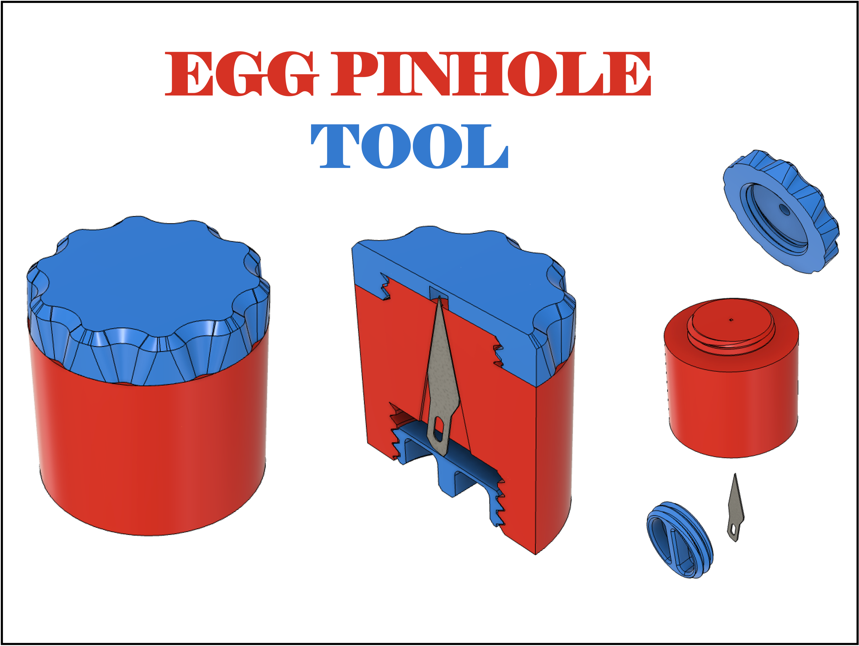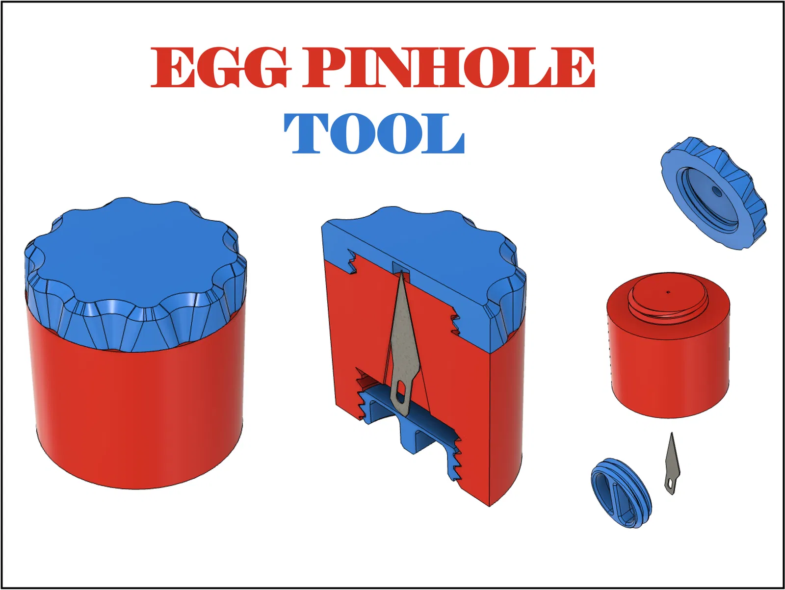Đây là một dụng cụ nhỏ in 3D dùng để tạo lỗ trên vỏ trứng, được thiết kế để giữ lưỡi dao X-Acto #11 một cách an toàn, chỉ để lộ phần đầu nhọn.