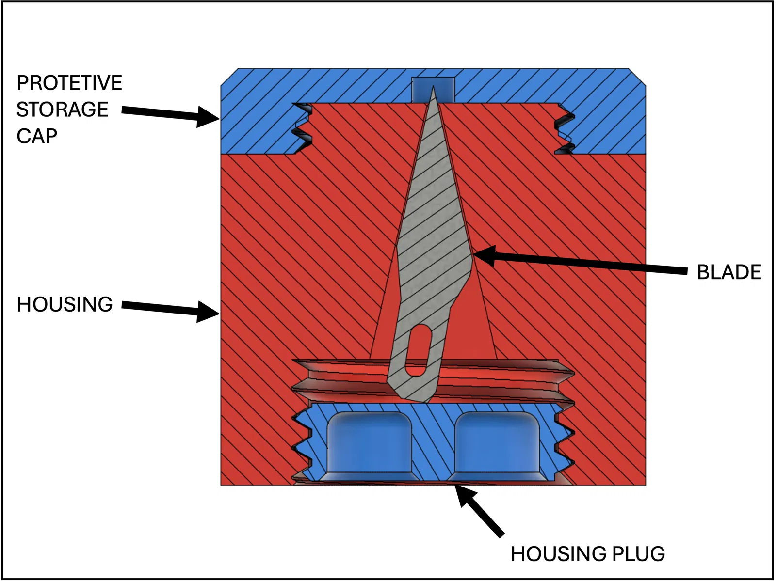 Nắp đậy ren xoắn bảo vệ – có các cạnh vân kim loại giúp cầm nắm dễ dàng, che kín hoàn toàn lưỡi dao khi không sử dụng