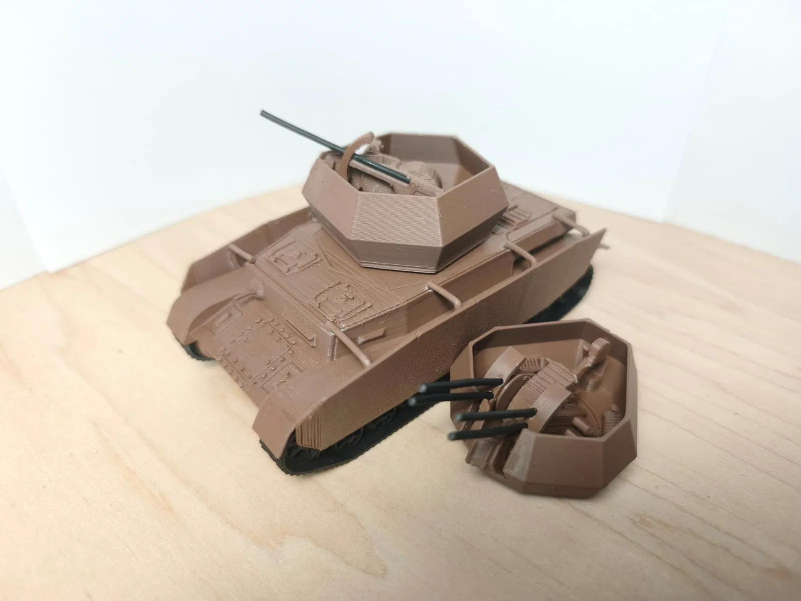 Lưu ý là phần thân xe được tái sử dụng từ Panzer 4 H nha, tui hết sợi để in bộ khác rồi. Phần pháo thì có 1 cái cắt từ sợi màu đen và có 1 cái nối 2 nòng lại với nhau để chỉnh nâng hạ nòng đó.