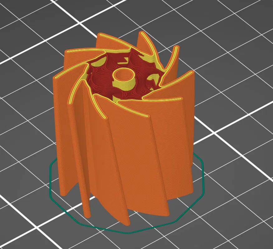 Con lăn này cứng hơn đáng kể so với con lăn gốc. Với các cánh mỏng hơn, tôi lo ngại rằng nó sẽ không còn in được nữa. Một lựa chọn khác là sử dụng TPU mềm hơn, nhưng tôi không có loại đó. Nếu ai đó sử dụng nó, xin vui lòng cho biết kết quả như thế nào.