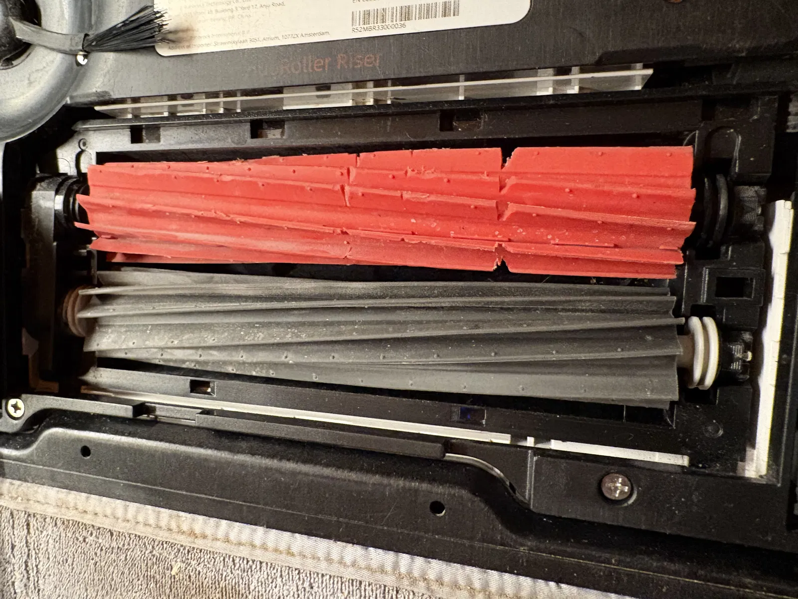 In đây là một con lăn thay thế bằng TPU cho roborock S8 Pro Ultra. Phiên bản này là con lăn màu xám trước, con lăn màu đỏ sẽ theo sau. Nó gồm hai phần: con lăn và giá đỡ trục. Giá đỡ trục được sử dụng ở phía truyền động.