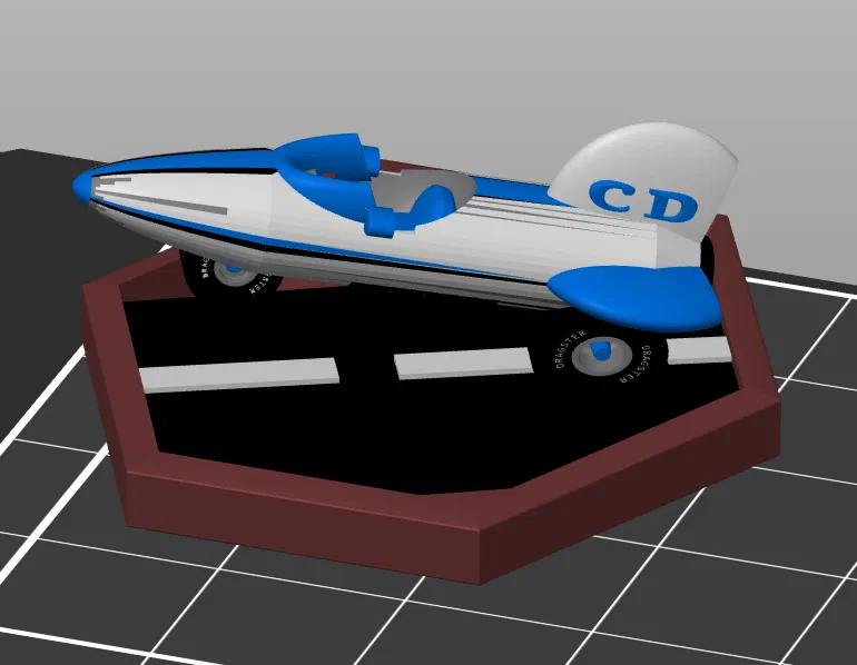 Xe tên lửa 1000 mã lực cho game Crash Derby, đảm bảo xử lý cực nhanh, không thể đuổi kịp. Có thể in thêm lửa cho động cơ. Tải file 3mf hoặc stl về để in và chơi.
