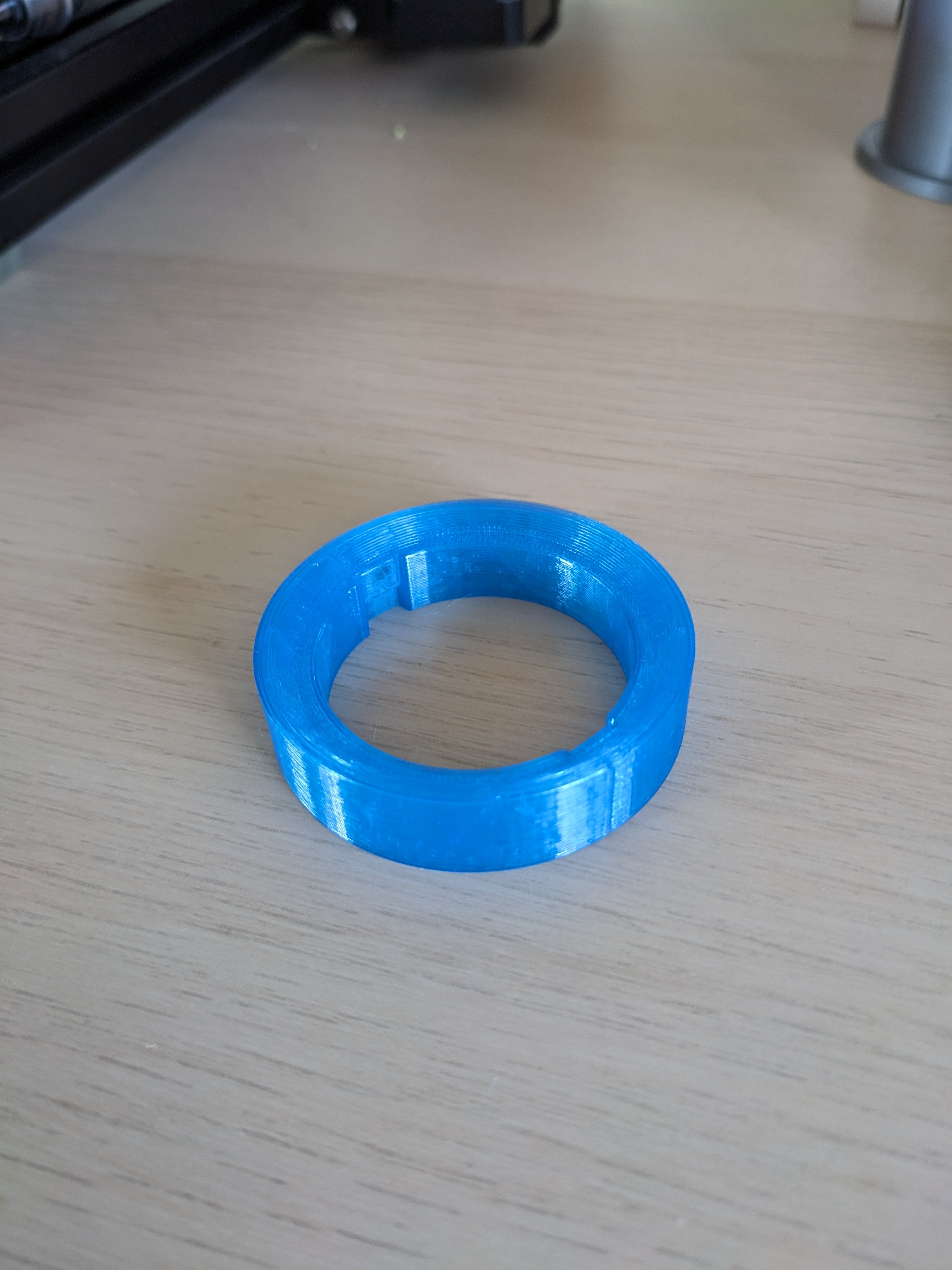 Tôi đã làm cho dung sai nhỏ hơn để nó vừa khít hơn vào nắp hộp ngũ cốc (đường kính ngoài 56,6mm), vì tôi thấy mô hình gốc hơi lỏng lẻo đối với hộp đựng của mình.