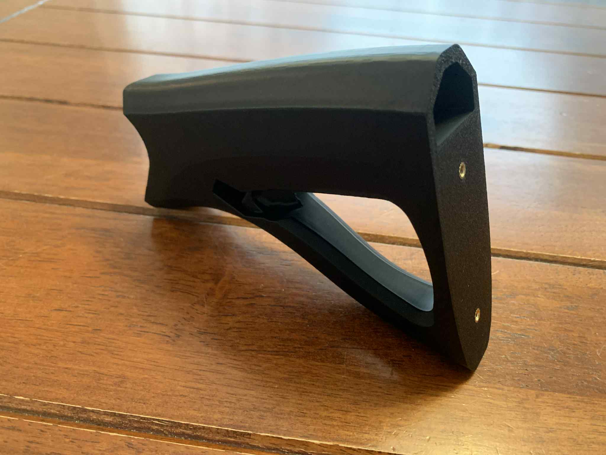 Một báng súng được phối lại cho Ontos. Nó sử dụng hai ốc đồng M3x4x5 ở phía sau để vặn ốc, tránh làm hỏng ren nhựa nếu bạn muốn thay thế tấm đệm (tôi sẽ làm sau khi mua được TPU).