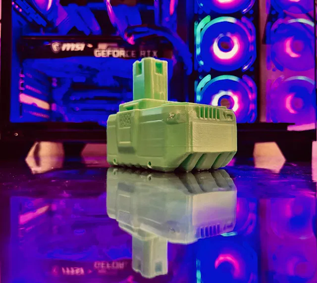 Đây là mẫu pin Ryobi 18v giả, dùng để trưng bày hoặc làm đạo cụ. Mẫu pin này được thiết kế để trông giống pin Ryobi 18v thật, phù hợp cho các dự án sáng tạo, mô hình hoặc trang trí.