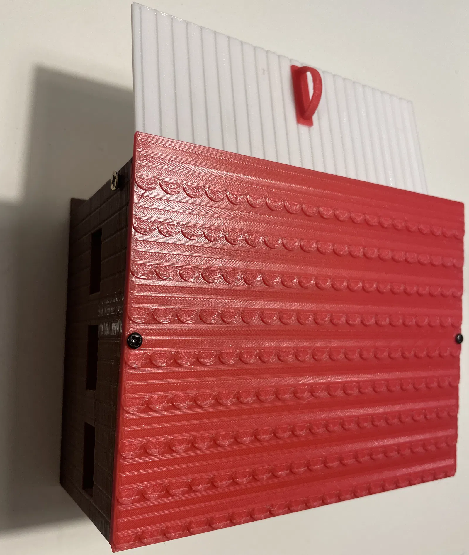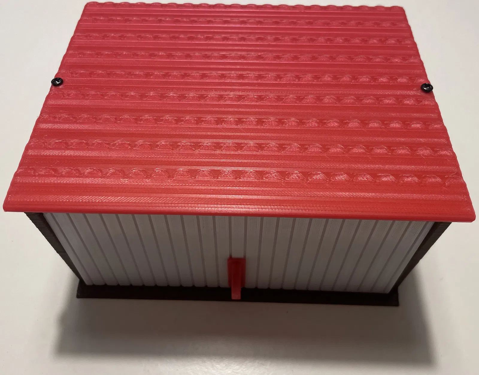 Một nhà kho nhỏ được thiết kế để đặt mô hình Disney Frank tí hon và hai máy kéo, hoặc cho các mô hình thu nhỏ khác. Tôi đã in bằng PETG trên máy in Raise 3D Pro2 sử dụng đầu phun có đường kính: 0.4mm, chiều cao lớp: 0.2mm và sử dụng giá đỡ cho cửa sổ trong Farm_Garage_Skeleton. Cửa được cố định bằng hai vít tự khai thác 4mm. Mái nhà được cố định bằng hai vít tự khai thác 3mm và keo. Móc phía trước chỉ dán bằng keo.