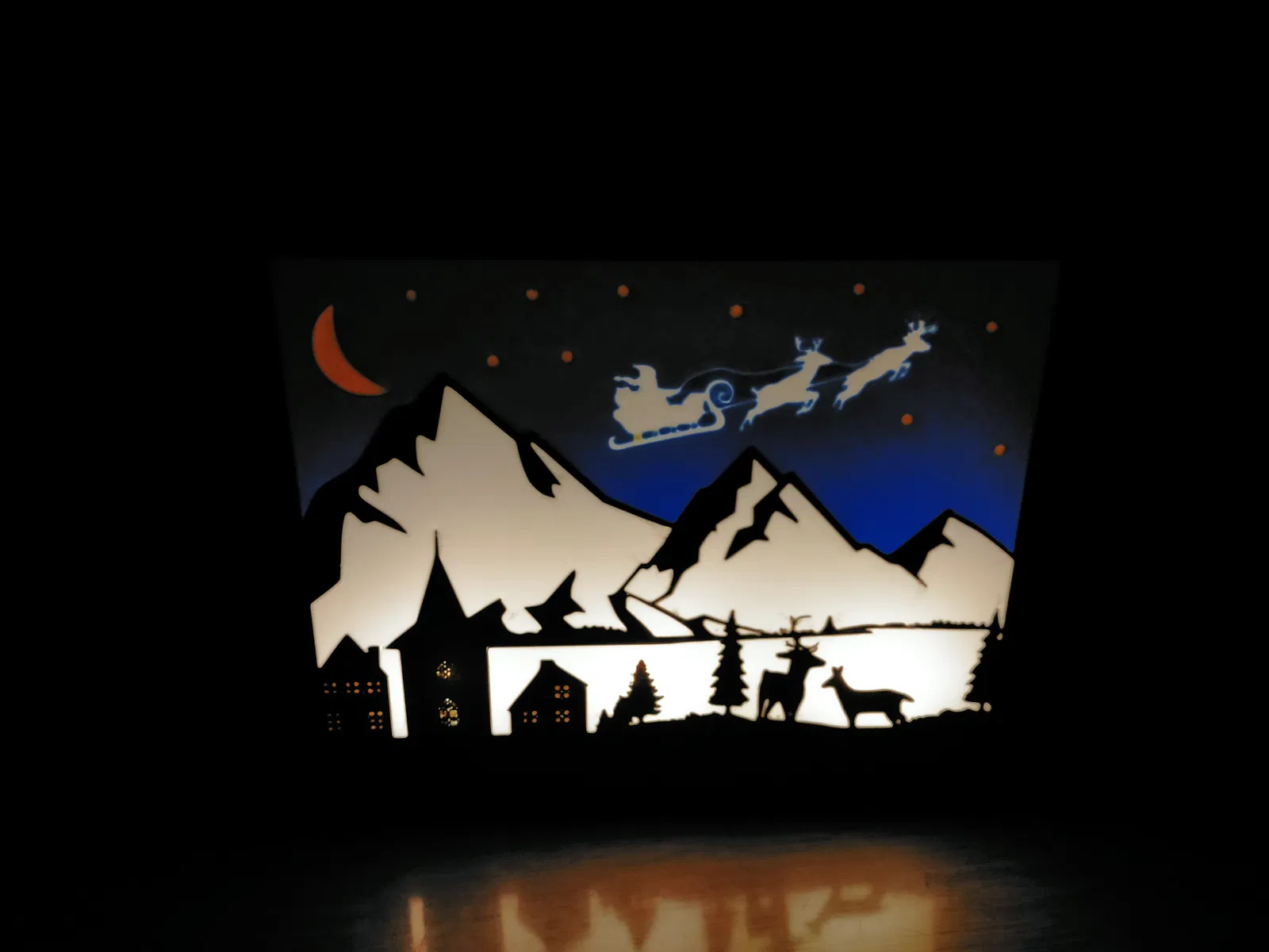 Bộ khung cảnh Giáng Sinh này dùng để thay thế cho cảnh Halloween trên hộp đèn LED. Lưu ý: Bắt buộc phải có bộ phận MMU khi in.