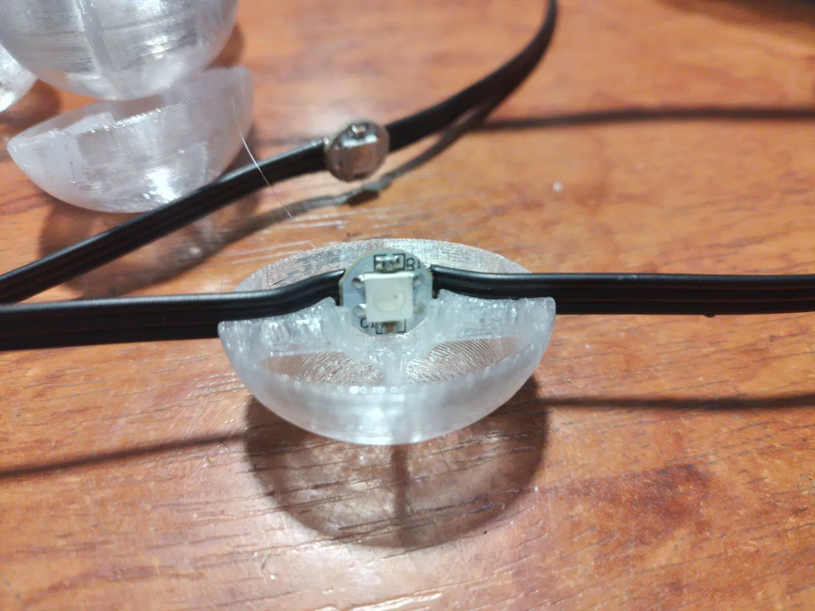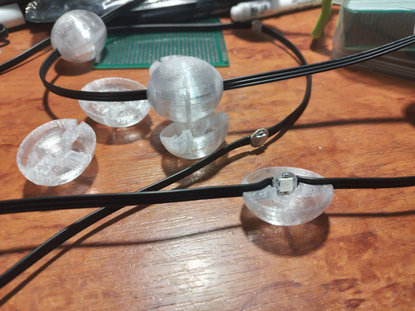 Cho mấy anh em nào muốn làm mấy cái dây đèn giáng sinh bao ngầu, mà không mua được đồ Tàu khựa, xài LED WS2812B nha, tôi có cái mẫu quả cầu khuếch tán ánh sáng với cái hộp đựng nè. Mấy anh em có thể xem dự án dây đèn đầy đủ ở đây & đây & đây. Tôi chỉ cung cấp mô hình 3D cho mấy quả cầu và cái vỏ cho bộ điều khiển điện tử thôi. Với tôi thì cái Arduino Nano được gắn trên một đoạn mạch breadboard tiêu chuẩn 50x70 mm (50x26 mm) đó.