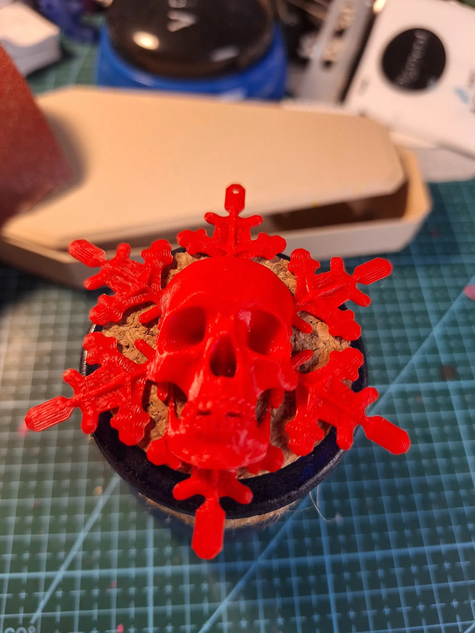 Mô hình trang trí hình bông tuyết có hình đầu lâu. Lấy cảm hứng từ "The Fallen Leaf", người dùng đã tạo ra phiên bản mùa đông này. Mô hình được in ngon lành ở độ dày lớp .1mm không cần support. Có thể in tỉ lệ nhỏ hơn 60%.