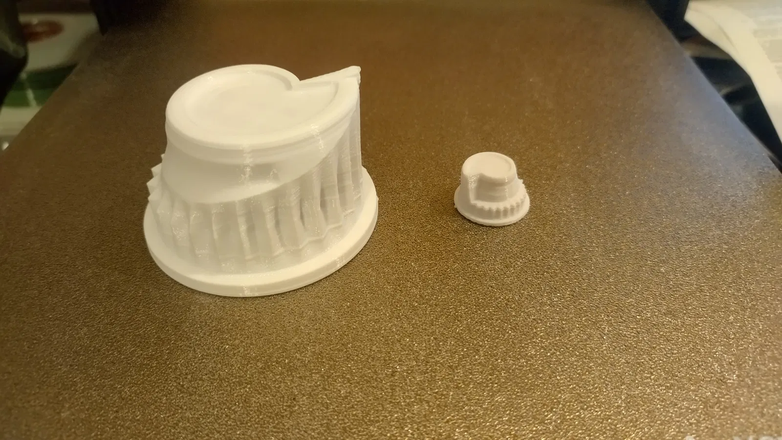 Thiết kế này đã được chỉnh sửa từ phiên bản gốc cho dự án bass điện của tôi để tham gia cuộc thi Hercules: Custom DJ Knobs. Các ảnh đính kèm cho thấy núm ở kích thước thiết kế và ở tỷ lệ 300% để thể hiện chi tiết.