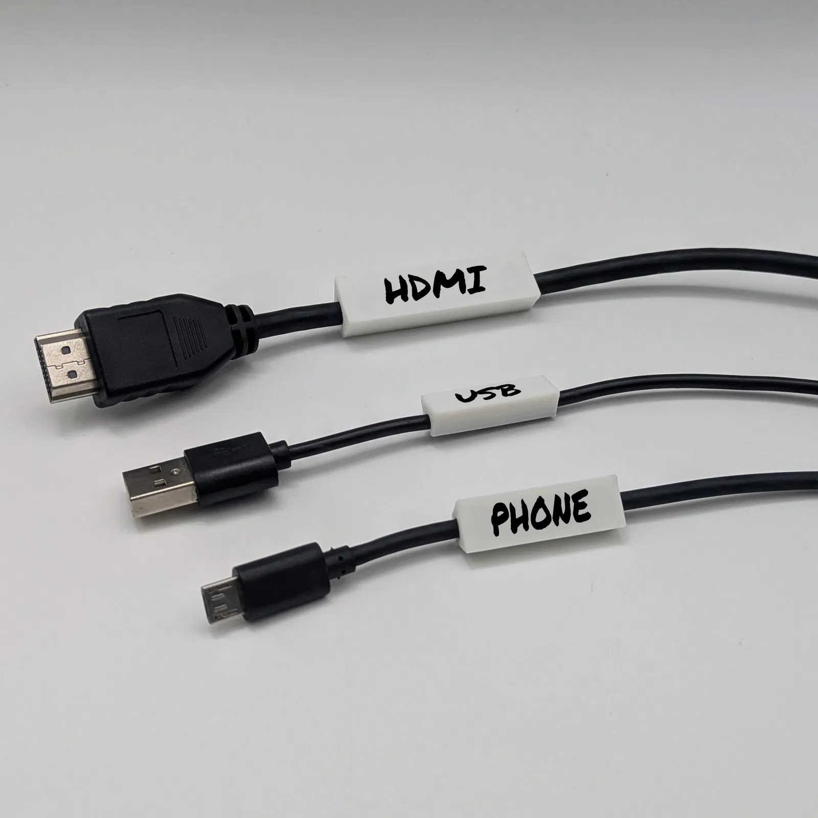 Bộ thẻ cáp bấm đa năng, dùng được cho dây cáp từ 2.5 mm đến 8 mm. Thẻ trống để bạn tự ghi nhãn bằng bút lông dầu, giúp sắp xếp dây nguồn, USB, sạc gọn gàng. Không cần vật liệu hỗ trợ, chỉ cần in ra và sử dụng.