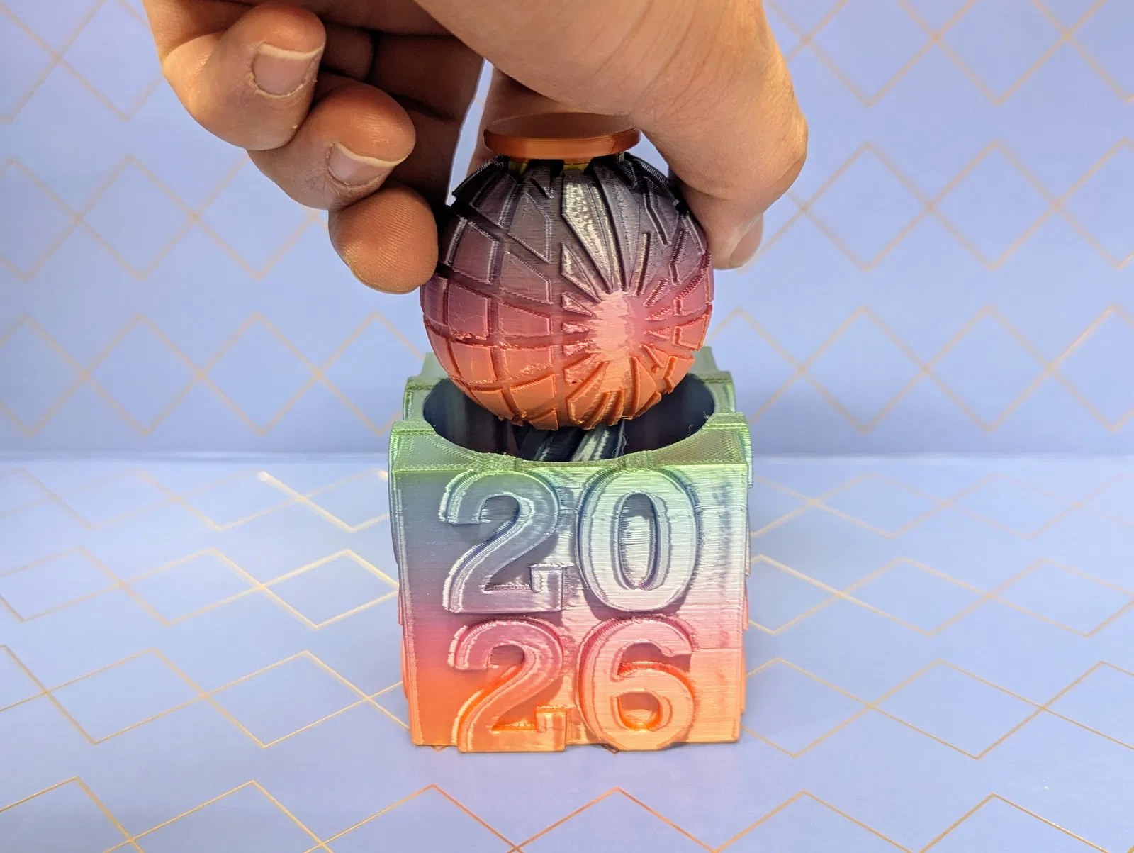 Cùng vui đón chào năm mới với món đồ chơi fidget xoắn ốc dạng vortex ngộ nghĩnh này, mô phỏng theo cảnh thả bóng ở New York. Bạn có thể dùng nó làm quà tặng cho bữa tiệc giao thừa hoặc tự in như là món đồ in 3D đầu tiên của năm mới.