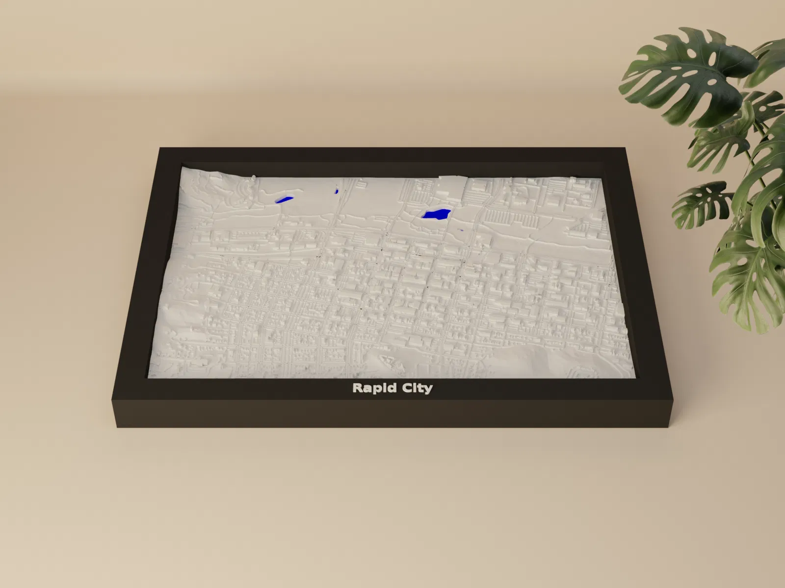 Nắm bắt vẻ đẹp phong cảnh thành phố Rapid City với mô hình địa hình thu nhỏ này! Mô hình 3D này đại diện cho khu vực địa lý xung quanh tọa độ địa lý 44.081, -103.230 (LatLng).