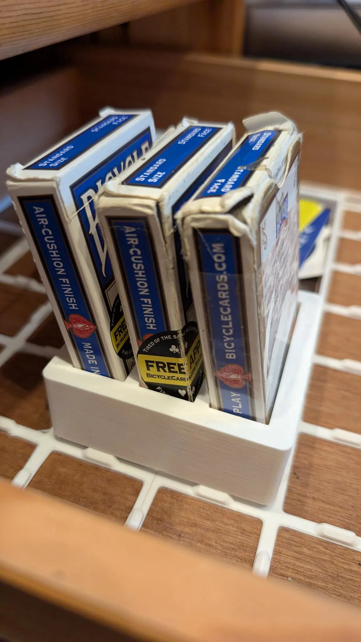 Hộp đựng 3 bộ bài này phù hợp với hầu hết các bộ bài tiêu chuẩn, dựa trên bài Bicycle. Sản phẩm in không cần hỗ trợ và có thể dùng với mật độ lưới in 10%. Thích hợp cho những ai yêu thích sưu tập bài.