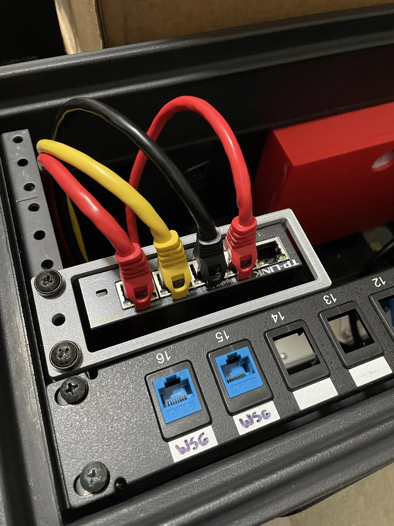 Cần một cách chắc chắn hơn để gắn một cái switch 5 cổng vào thùng đựng thiết bị âm thanh của tui, nên tui đã nghĩ ra cái này.