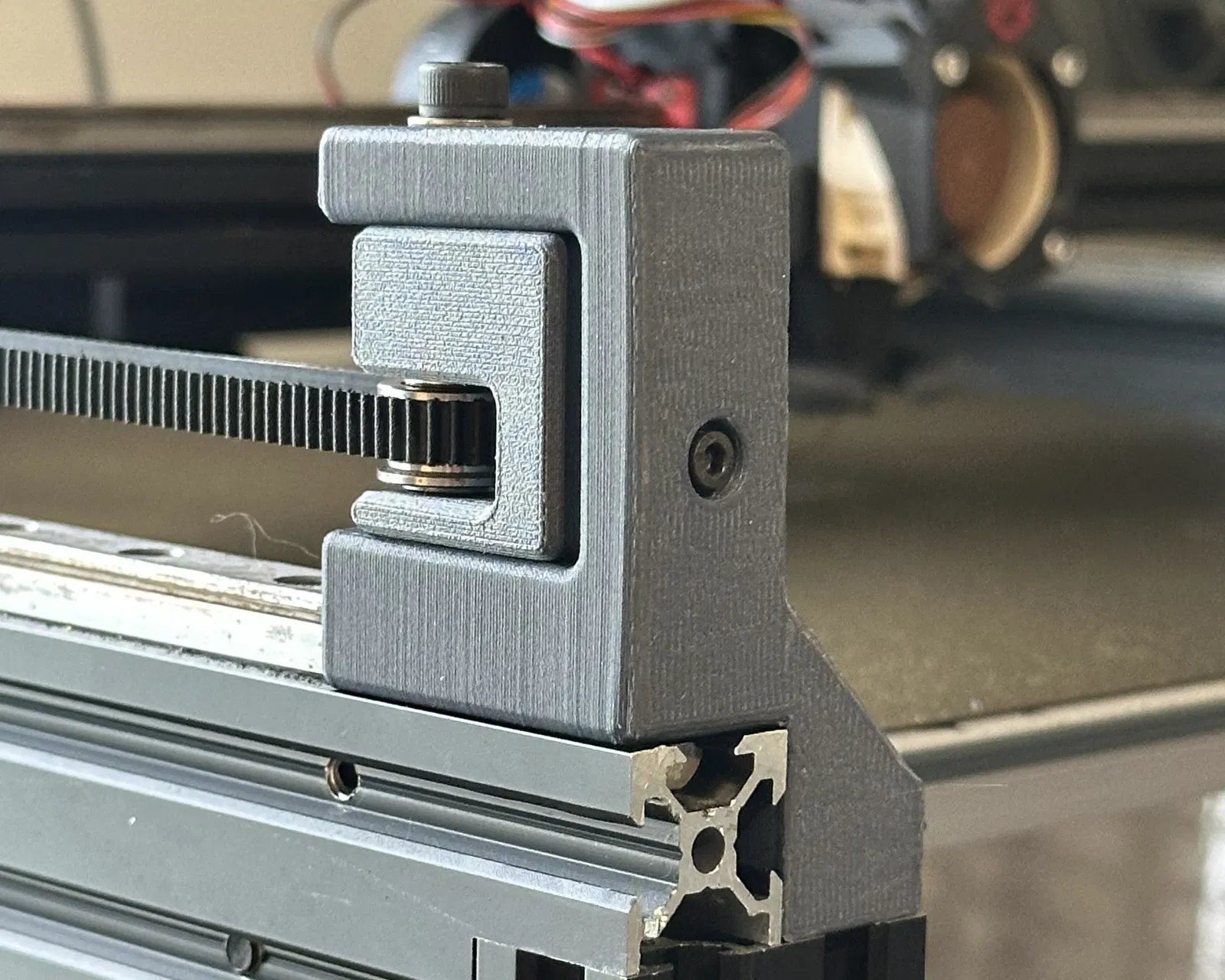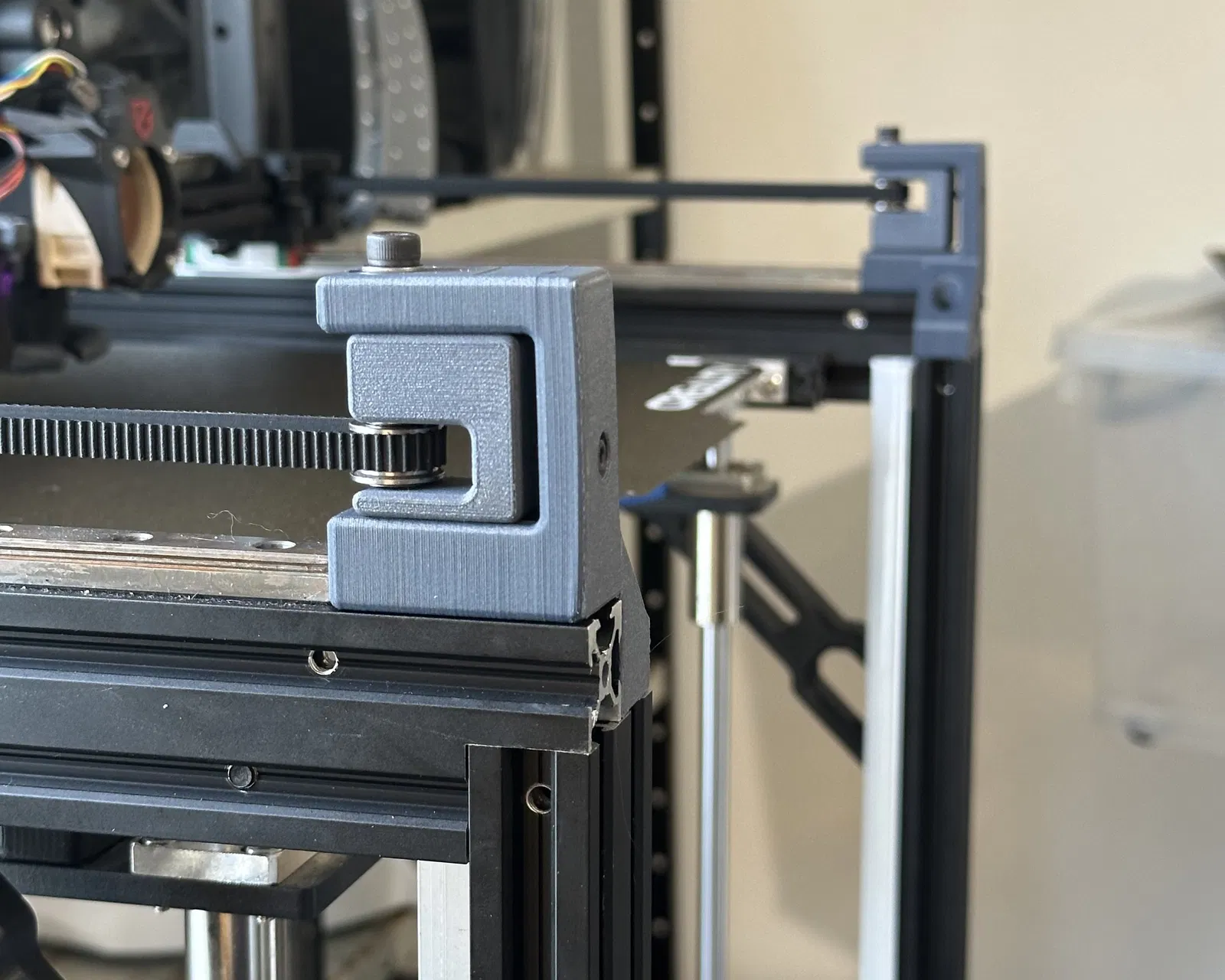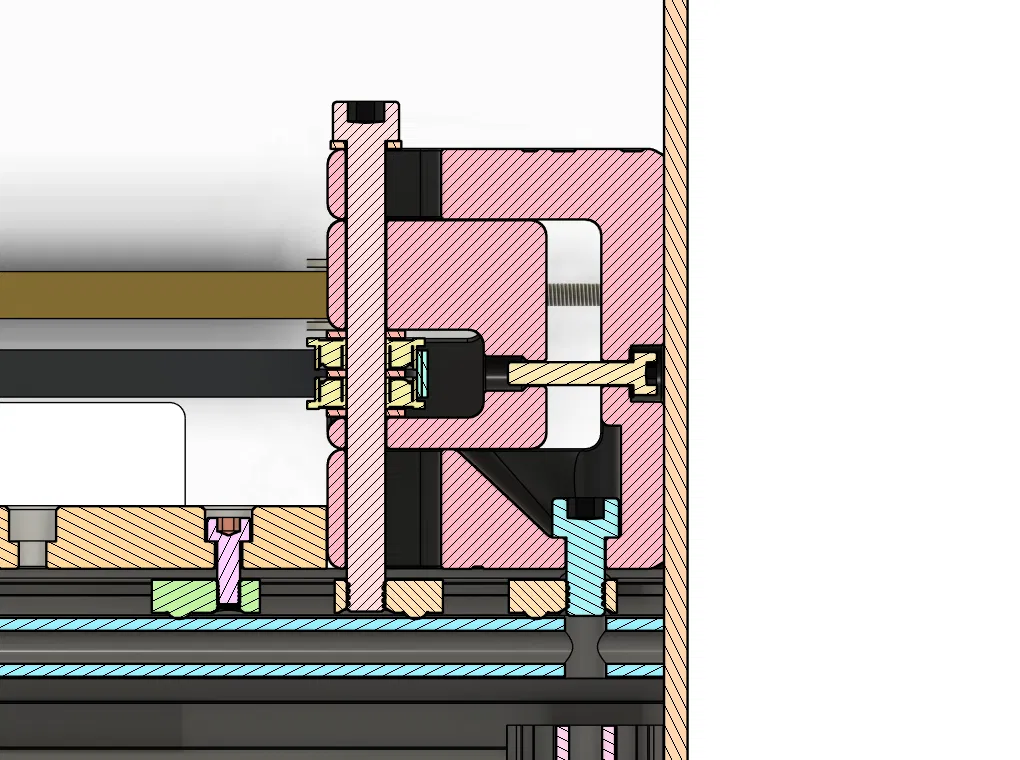 - Loại bỏ mấy cái "block trượt" vì khi bạn di chuyển mấy con step motor bên trong khung (để làm khung bao quanh) thì bạn phải di chuyển cả ray trượt tuyến tính và bạn sẽ mất rất nhiều hành trình di chuyển của mấy cái block trượt đó. Nó chỉ còn lại vài mm để chỉnh độ căng thôi.